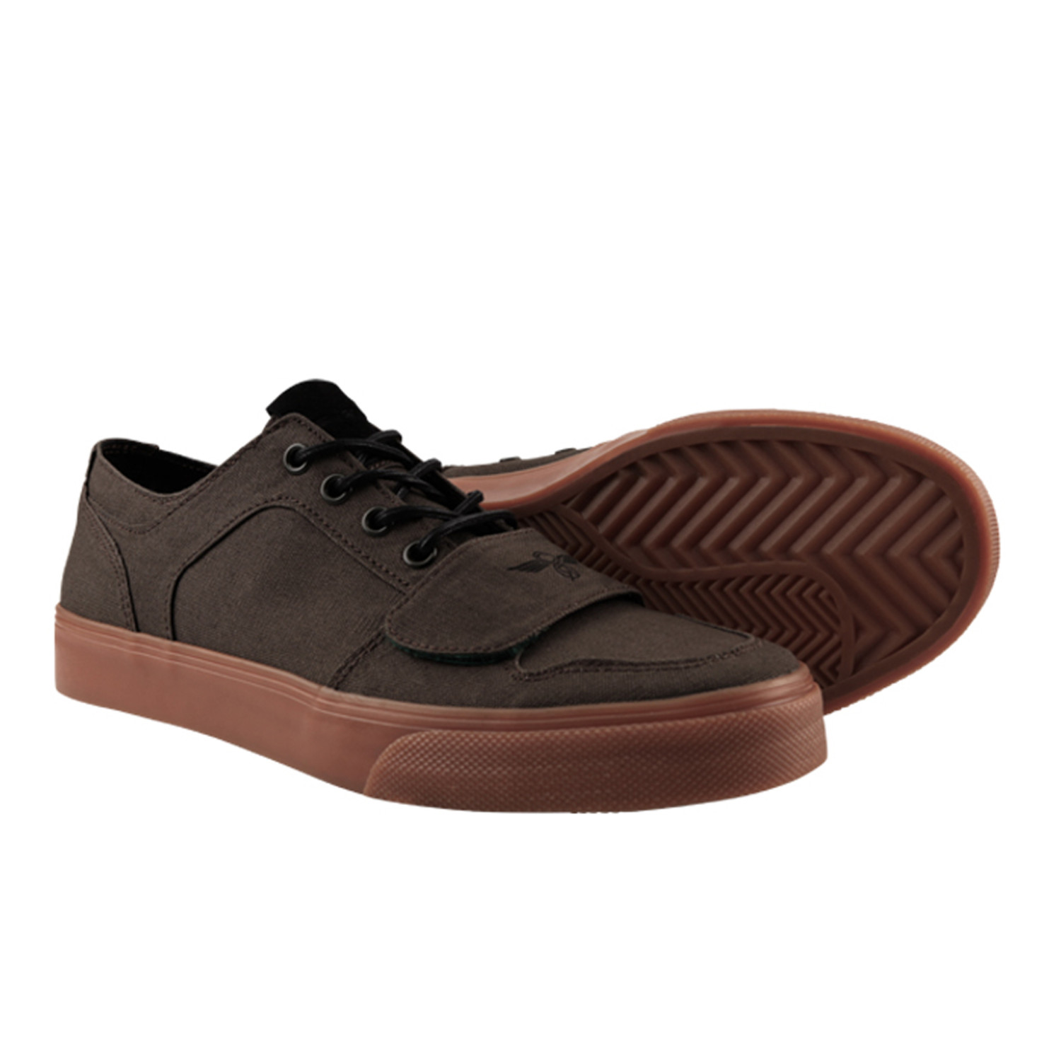 Signature Cesario Lo XVI is the market leader for casual wear and recognized for helping pioneer the lifestyle footwear genre. Features include a unique upper pattern highlighted by a forefoot strap and finished vulcanized sole. Inside, the canvas lining has a black and charcoal geometric pattern. There also is a molded Ortholite insole. The sneakers sit on brown vulcanized gum soles.