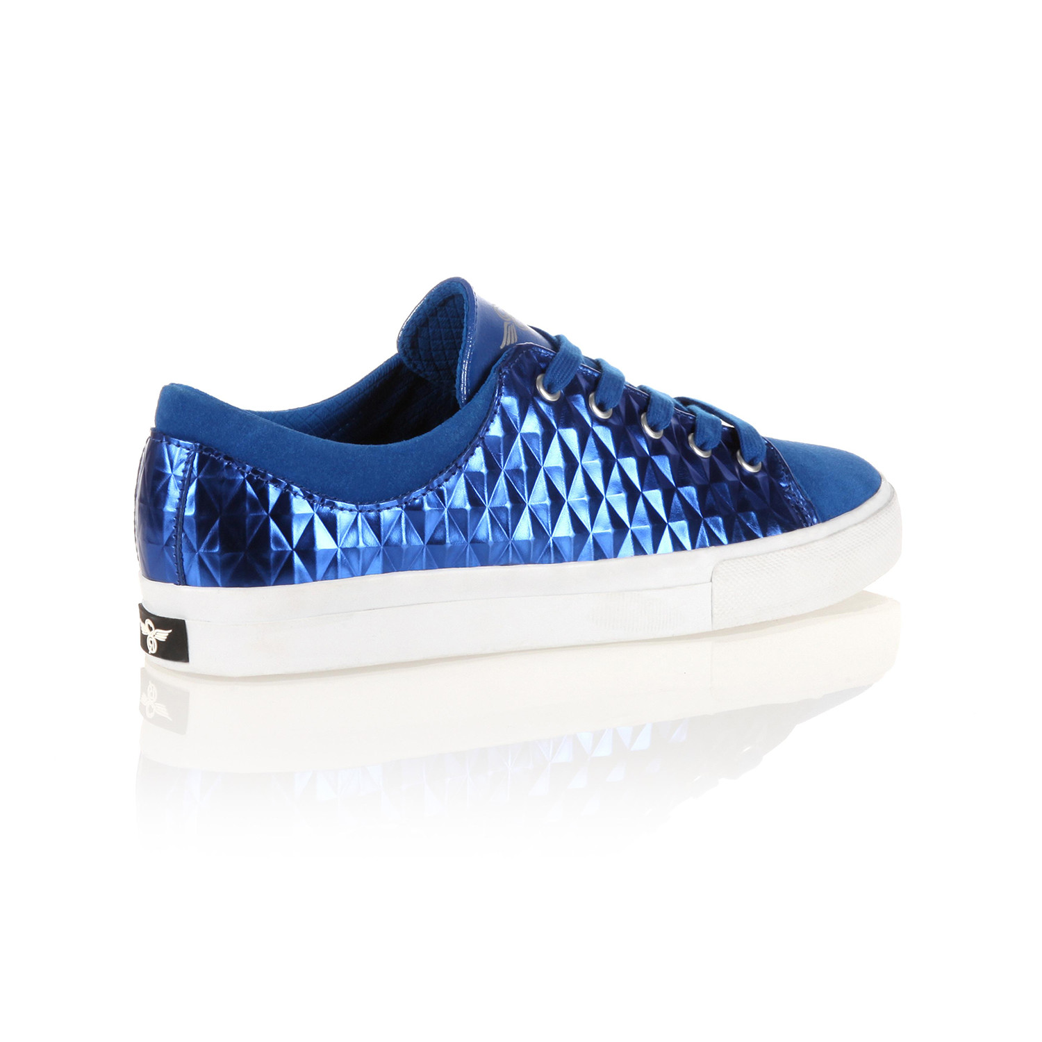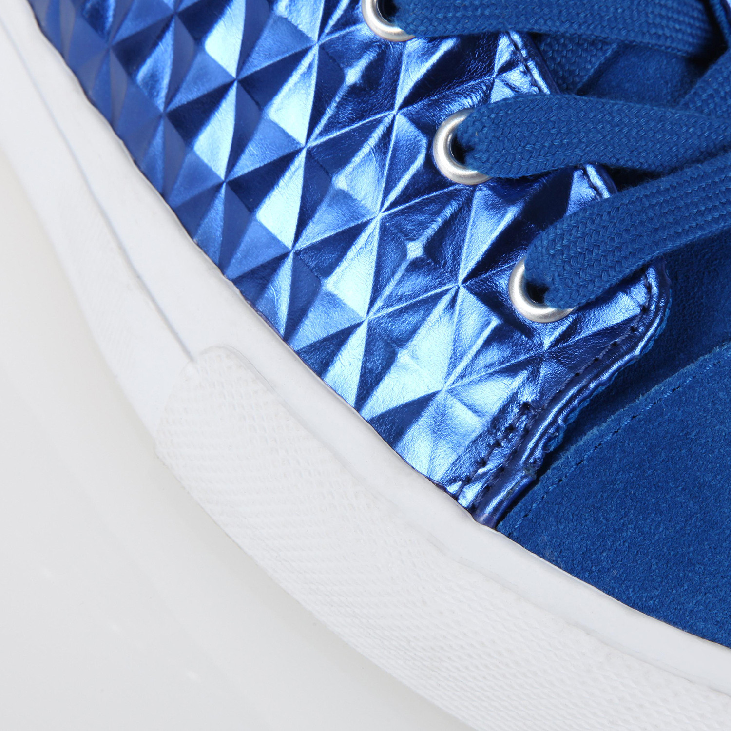 The Creative Recreation Forlano Blue Diamonds shoe is crafted from diamond-embossed leather, suede and metallic leather. It has a textile lining.