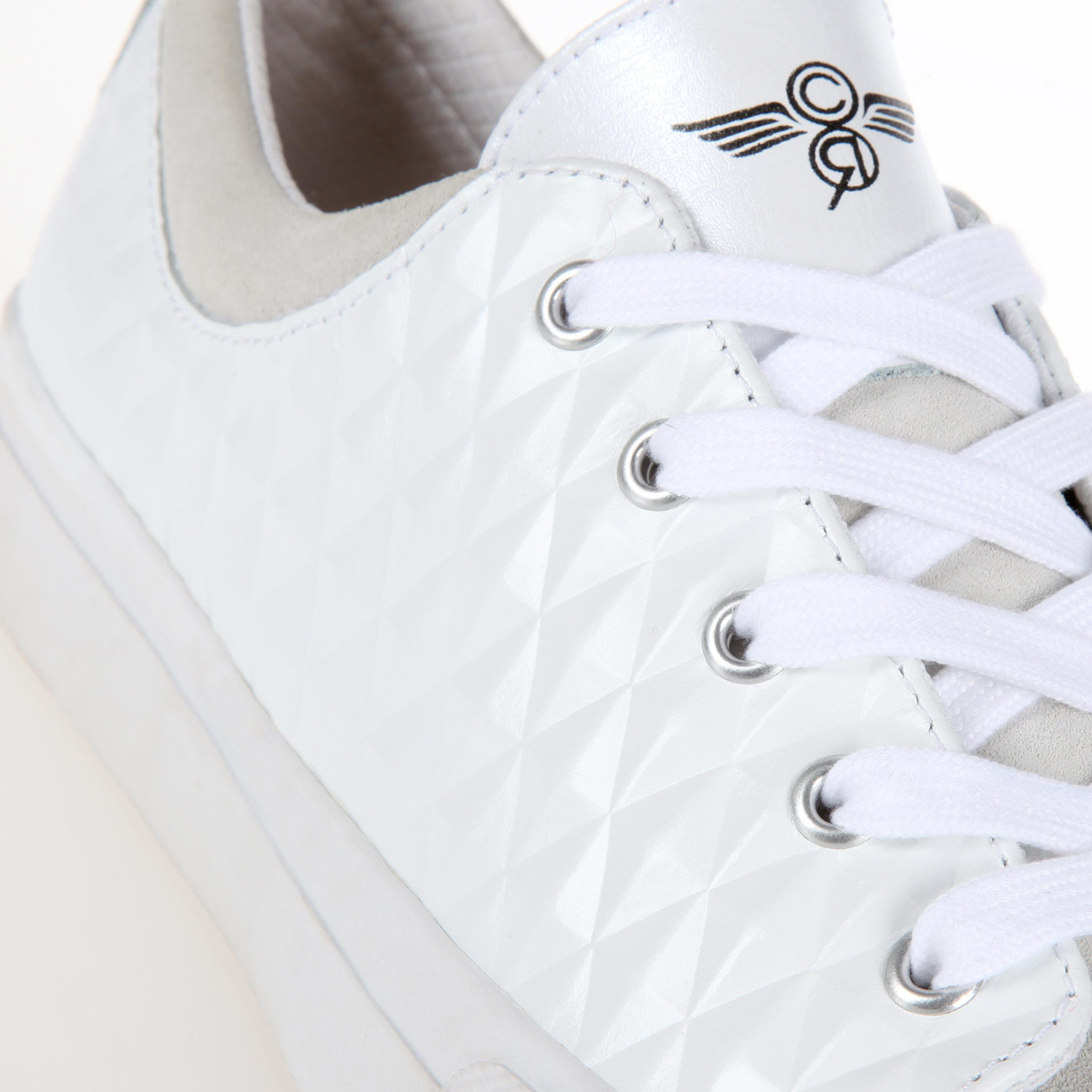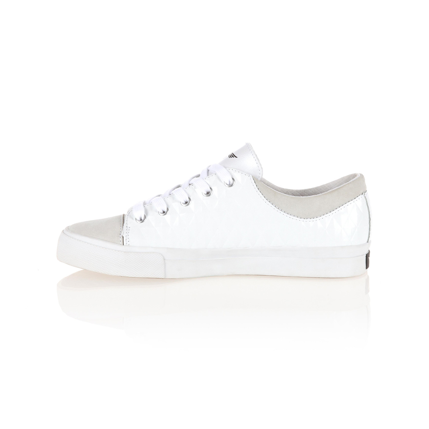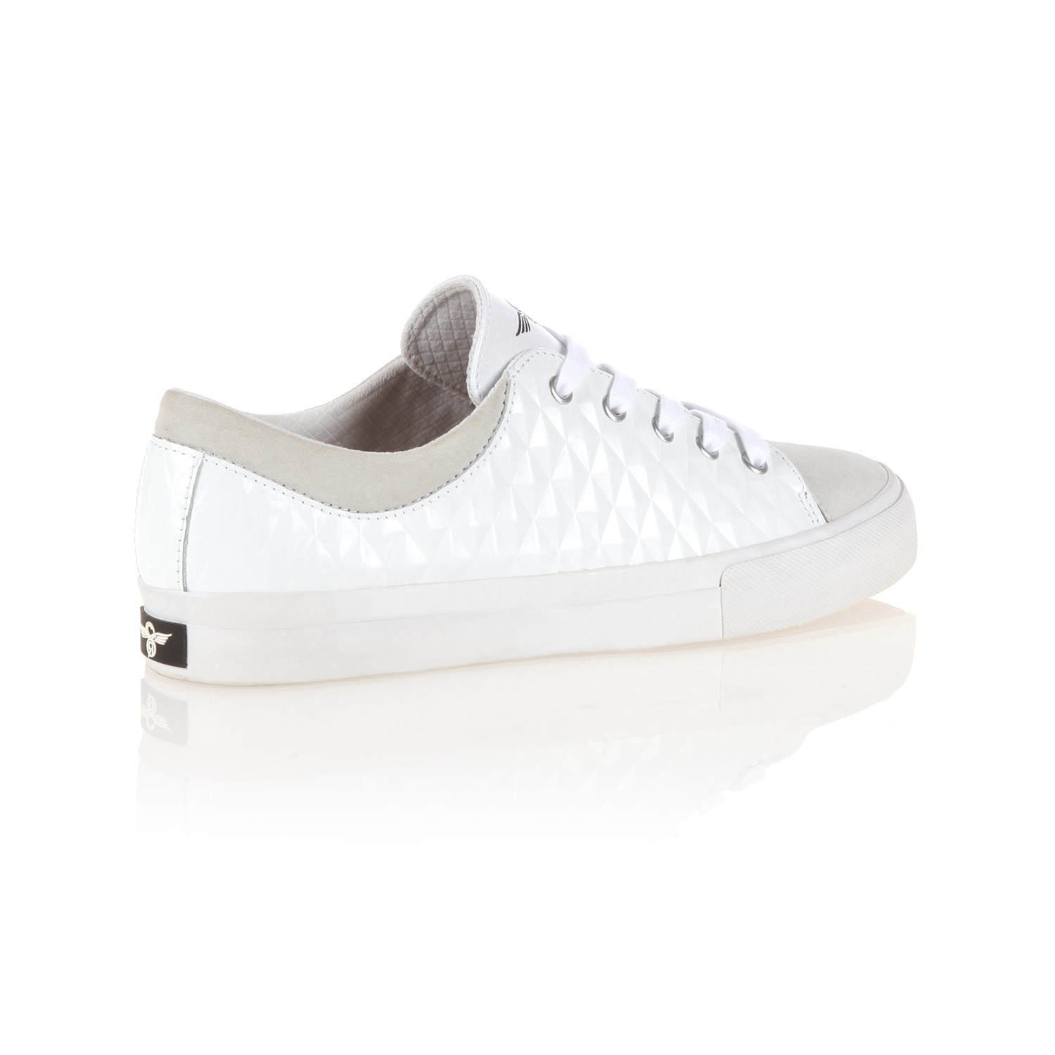 The Creative Recreation Forlano White Diamonds sneaker features diamond-embossed leather, suede and metallic leather. Inside is a textile lining.