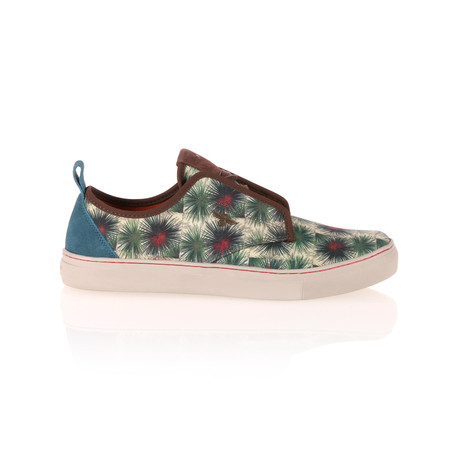 Features of the Lacava include Creative Recreation's hidden gillie lace system, heel pull-tab, and a rubber sole. The Creative Recreation Lacava Grey Burst Blue sneaker offers burst-print canvas and suede. Inside is a color-pop lining.