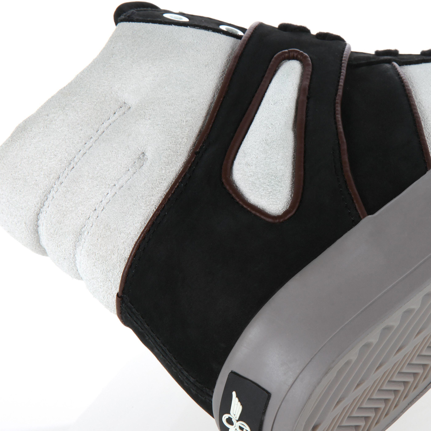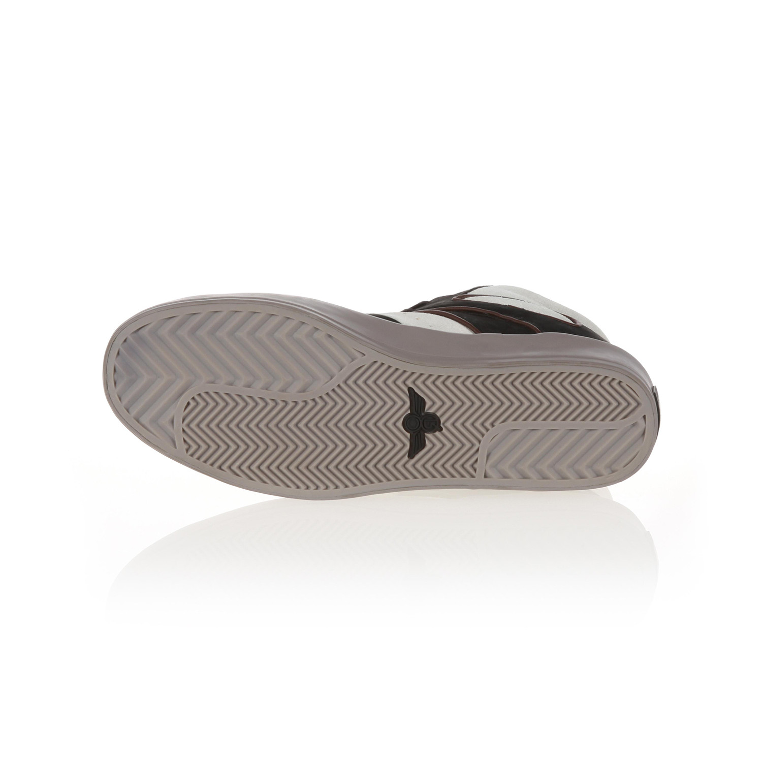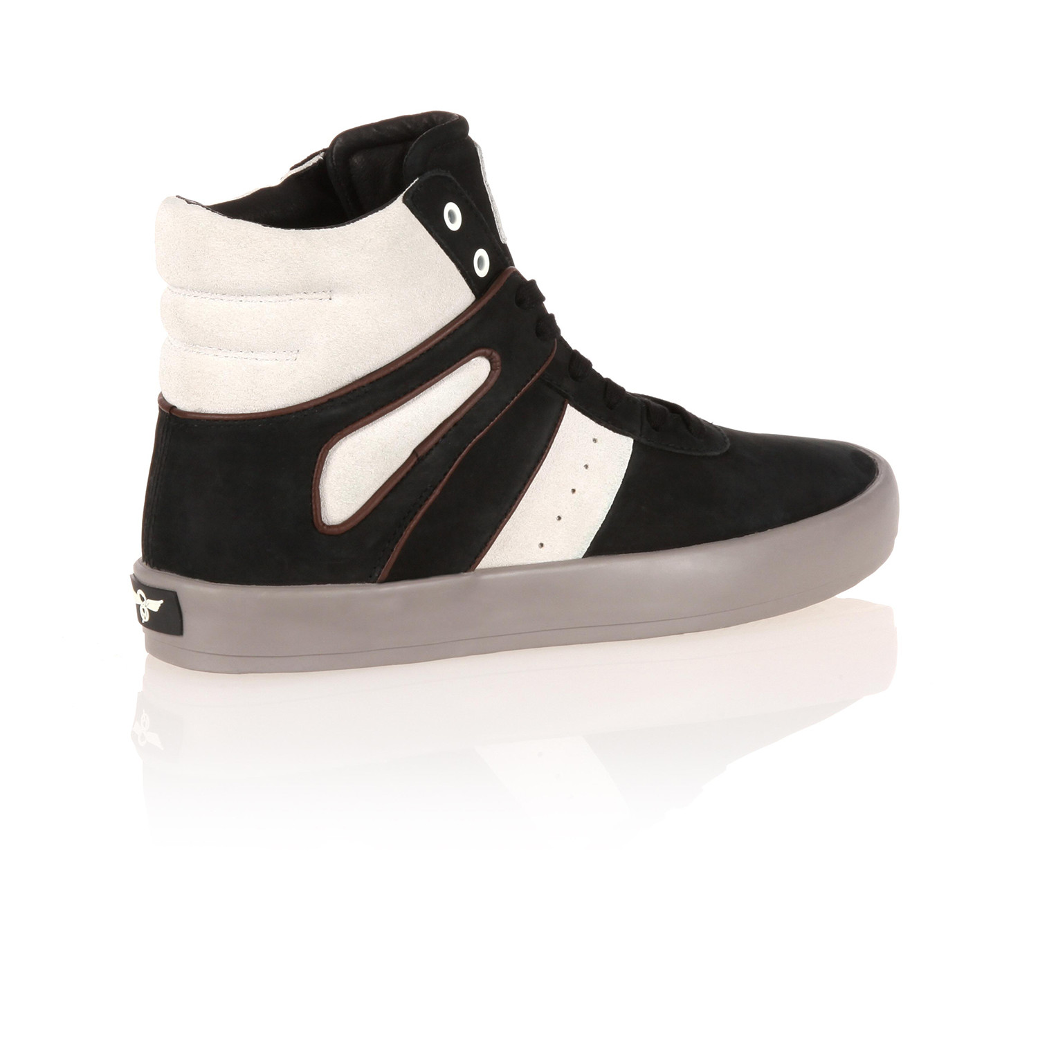 The fashion-forward high-top sneaker has intricate detailing on the collar, heel and quarter panels. The vulcanized outsole and clean toe vamp are two reasons this style is already a fan favorite. This Creative Recreation Moretti Black Marshmallow sneaker is made of washed nubuck and washed suede. It has contrast piping and leather eyelets. Inside is a leather lining.