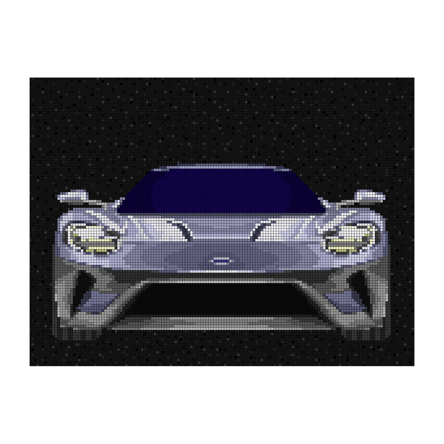 Printed on 200 GSM matte paper, this top quality print from Octavian Mielu showcases the Ford GT. The unique pixelated mosaic style offers a fresh take on the classic automobile print.