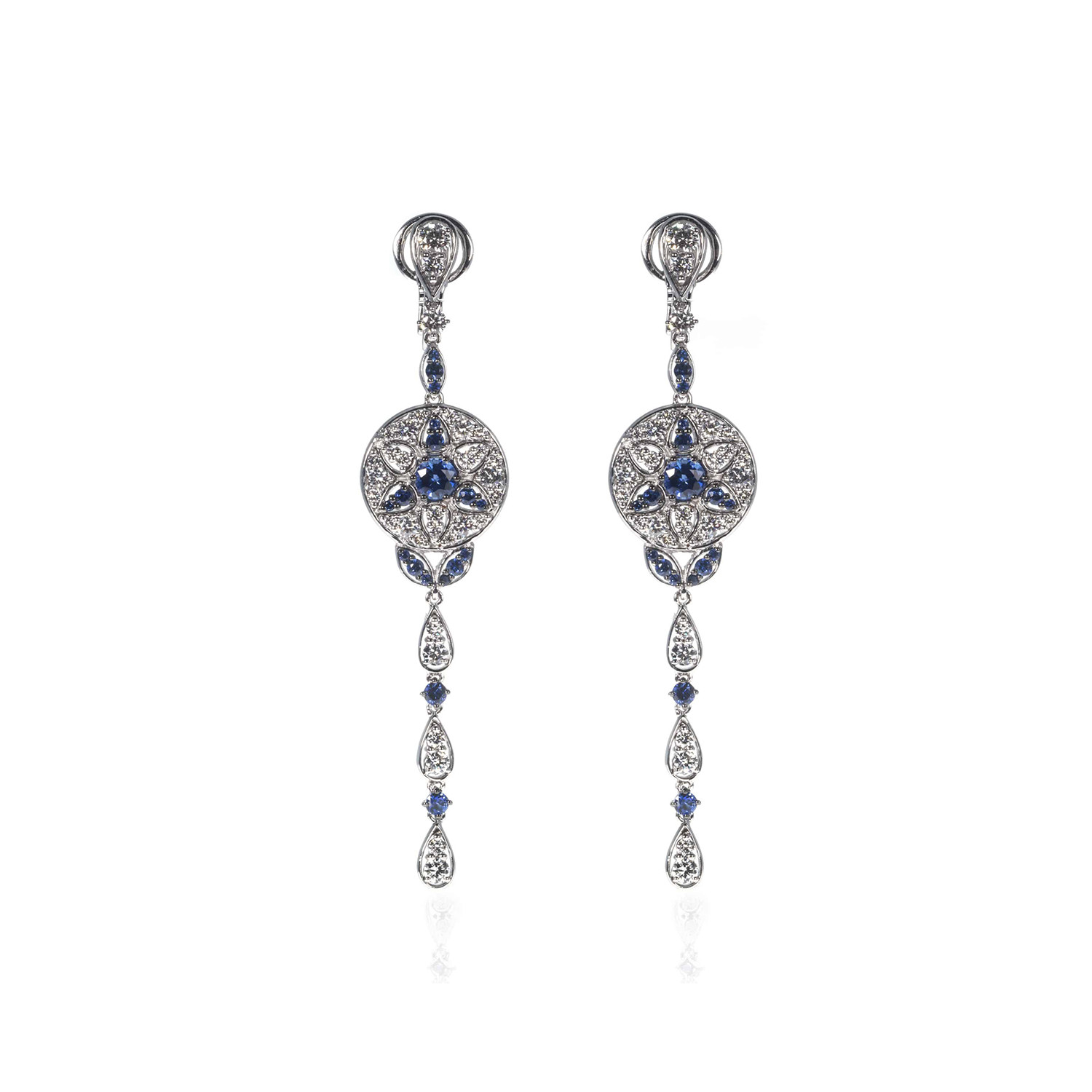 Crivelli 18k White Gold Diamond + Sapphire Earrings