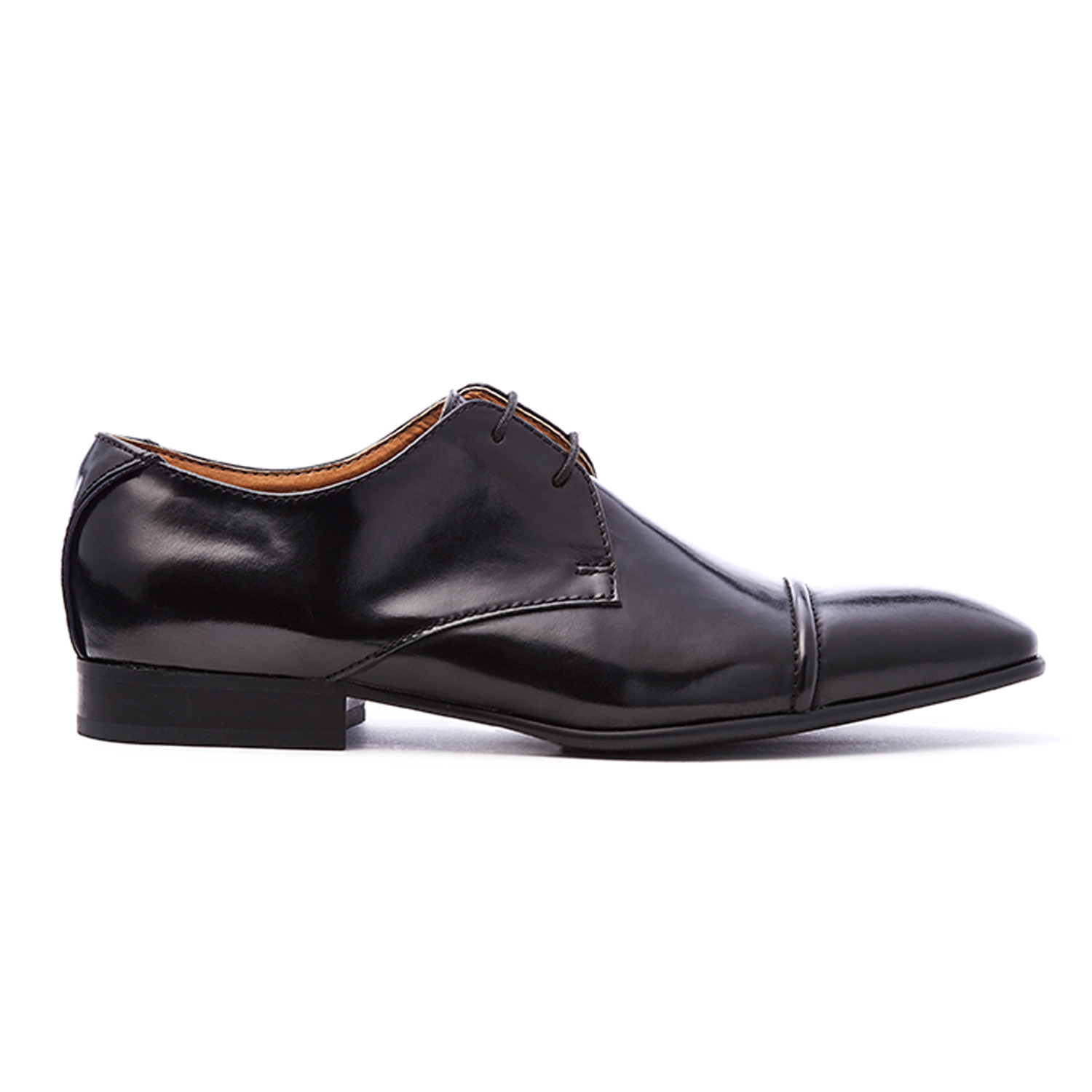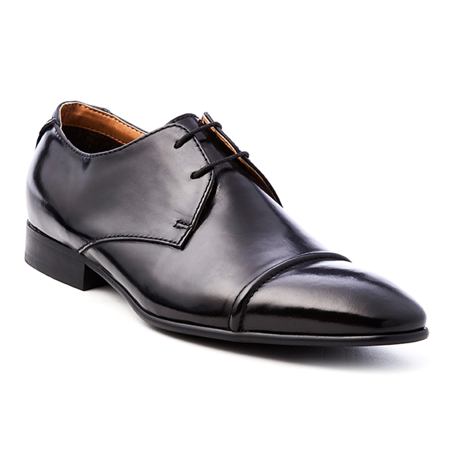 Lace up derby tie toe cap dress shoe.