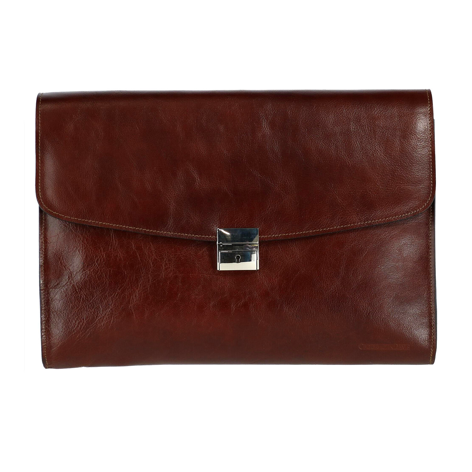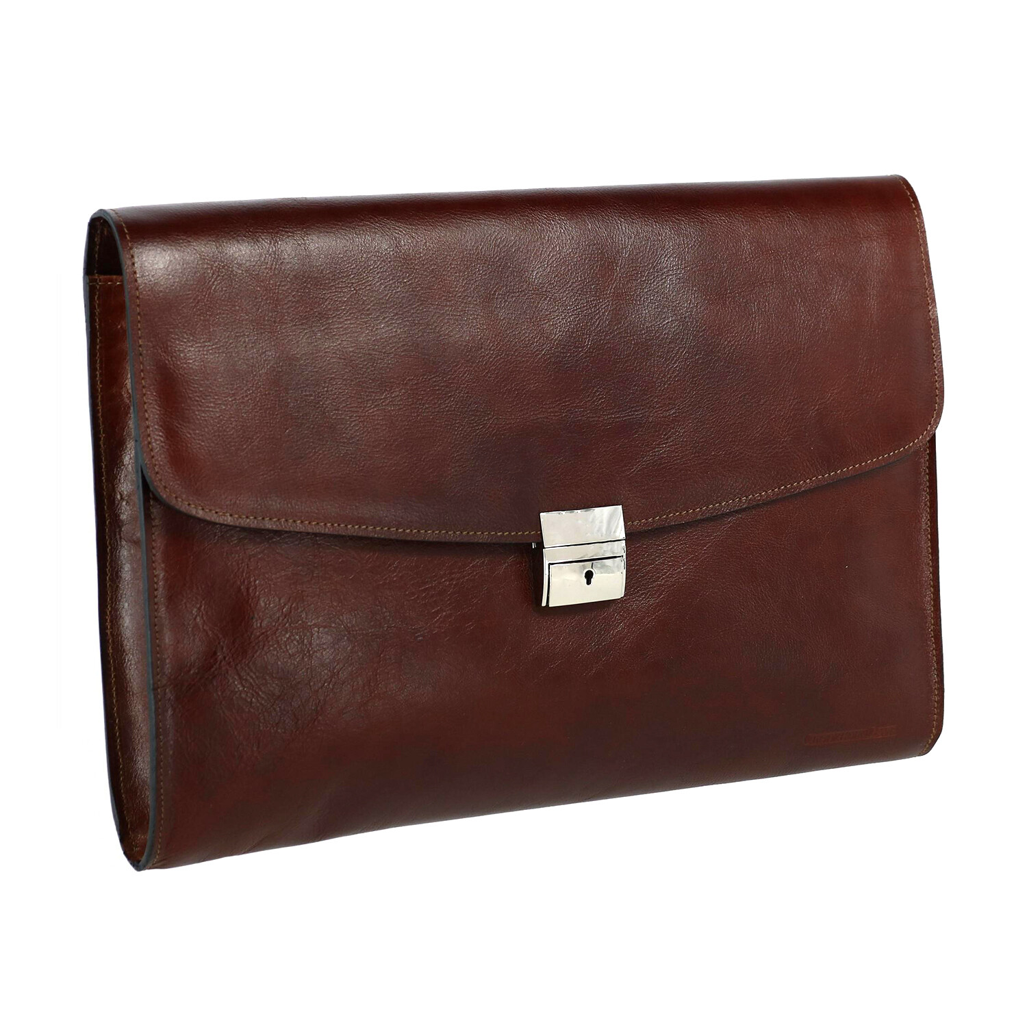 With a built in organizer, this underarm portfolio briefcase is both stylish and practical. Measuring 15.75 inches wide, you can easily fit even legal size folders in the large main compartment. The slip pocket on the outside is perfect for storing items that need to be easily accessible. The interior has a zippered side pocket running the length of the bag, 3 large gusseted pockets, 5 pen holders, and a card holder. The polished silver tone exterior latch can be locked with an included key for security.