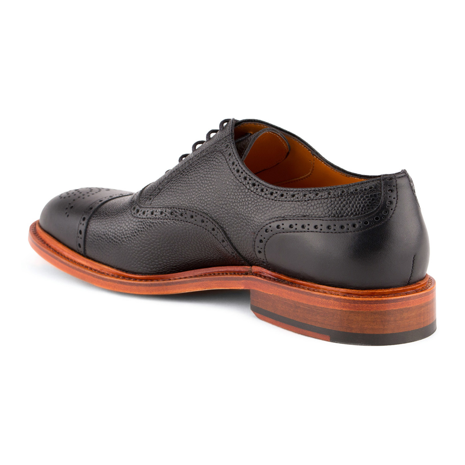 Medallion cap toe oxford. Goodyear welted construction and leather outsole.