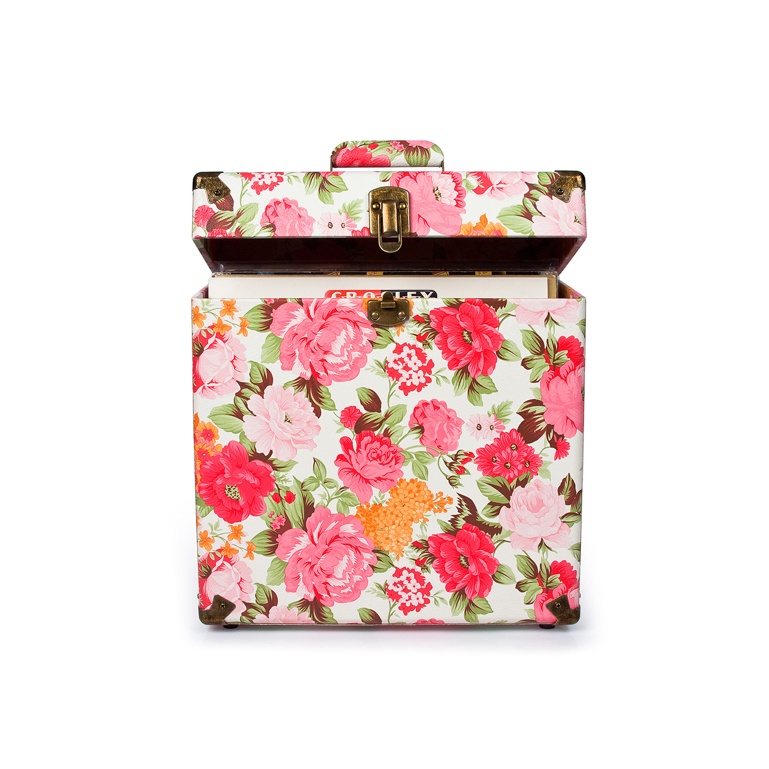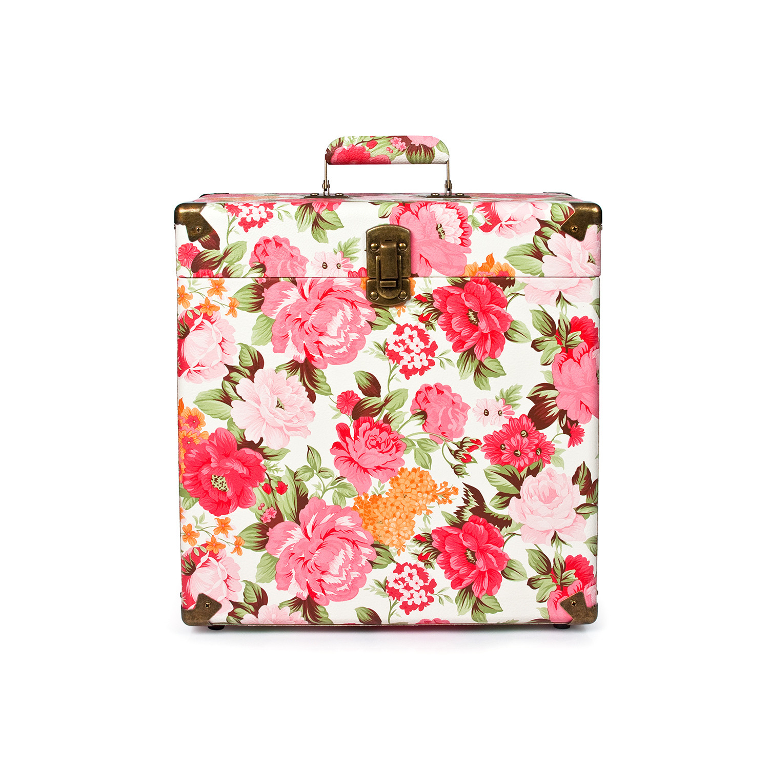 Stash and tote your precious vinyl LP records with this handy faux leather Record Carrying Case. Heavy duty latches and hinges will keep discs safe and secure, and the gorgeous print will go well with the rest of your decor.