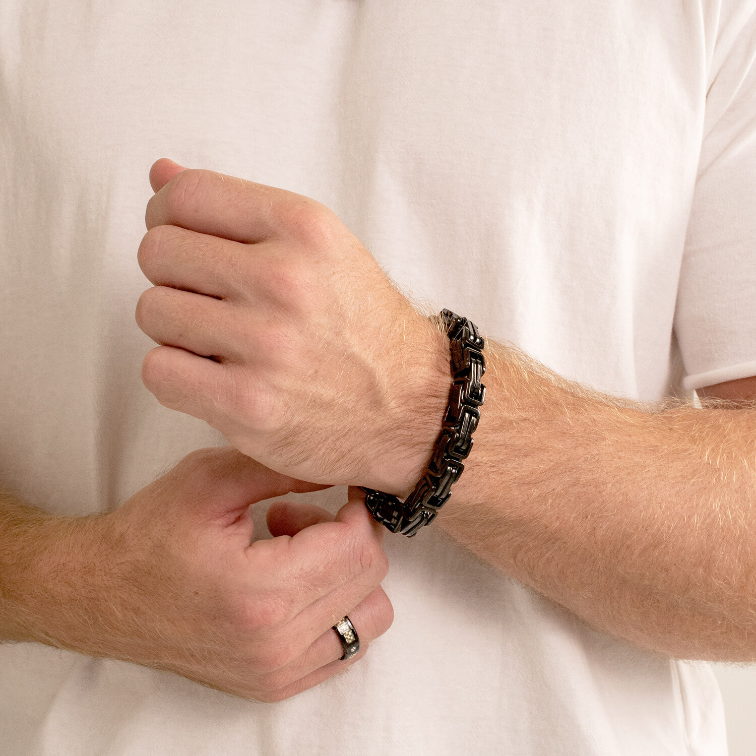 Black Plated Stainless Steel Byzantine Chain Bracelet