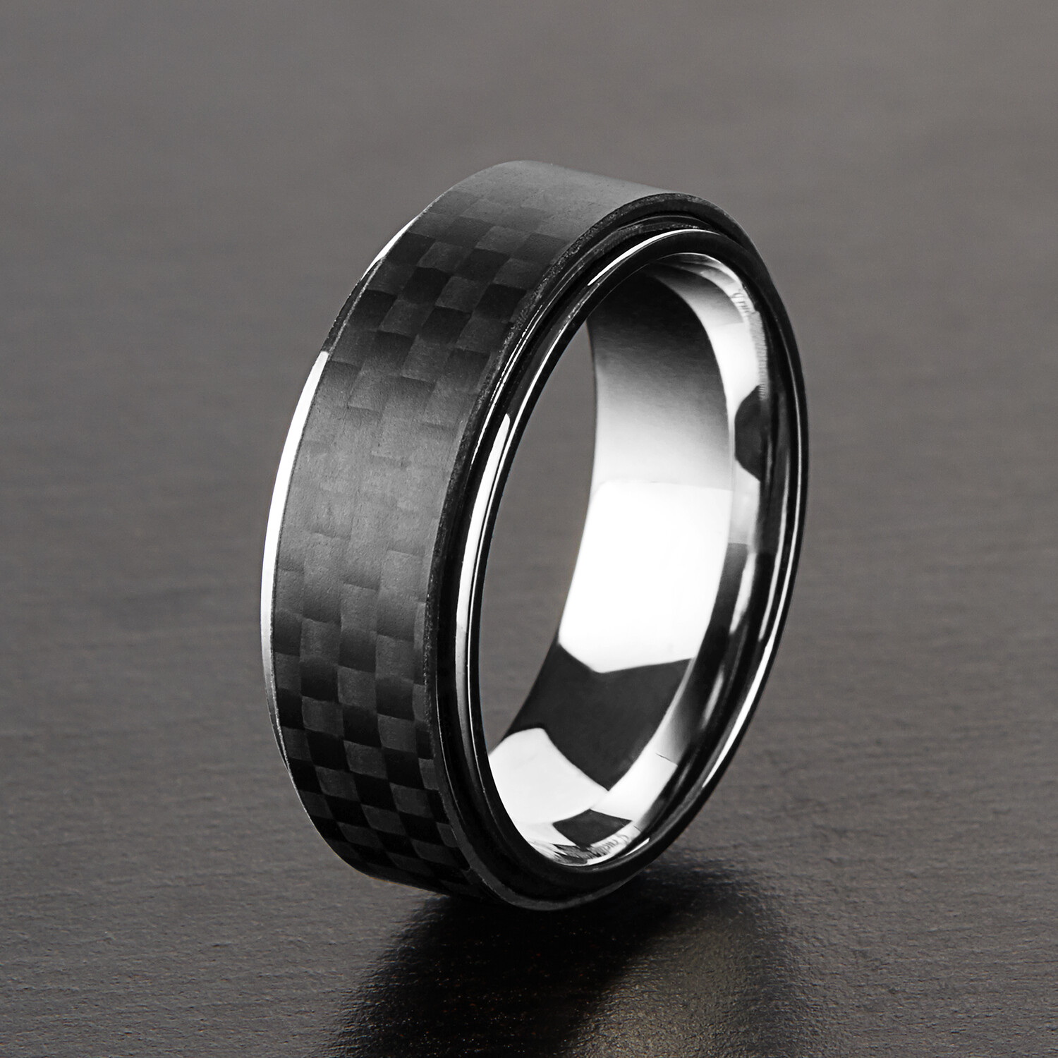 Carbon Fiber Overlay Stainless Steel Ring // 8mm