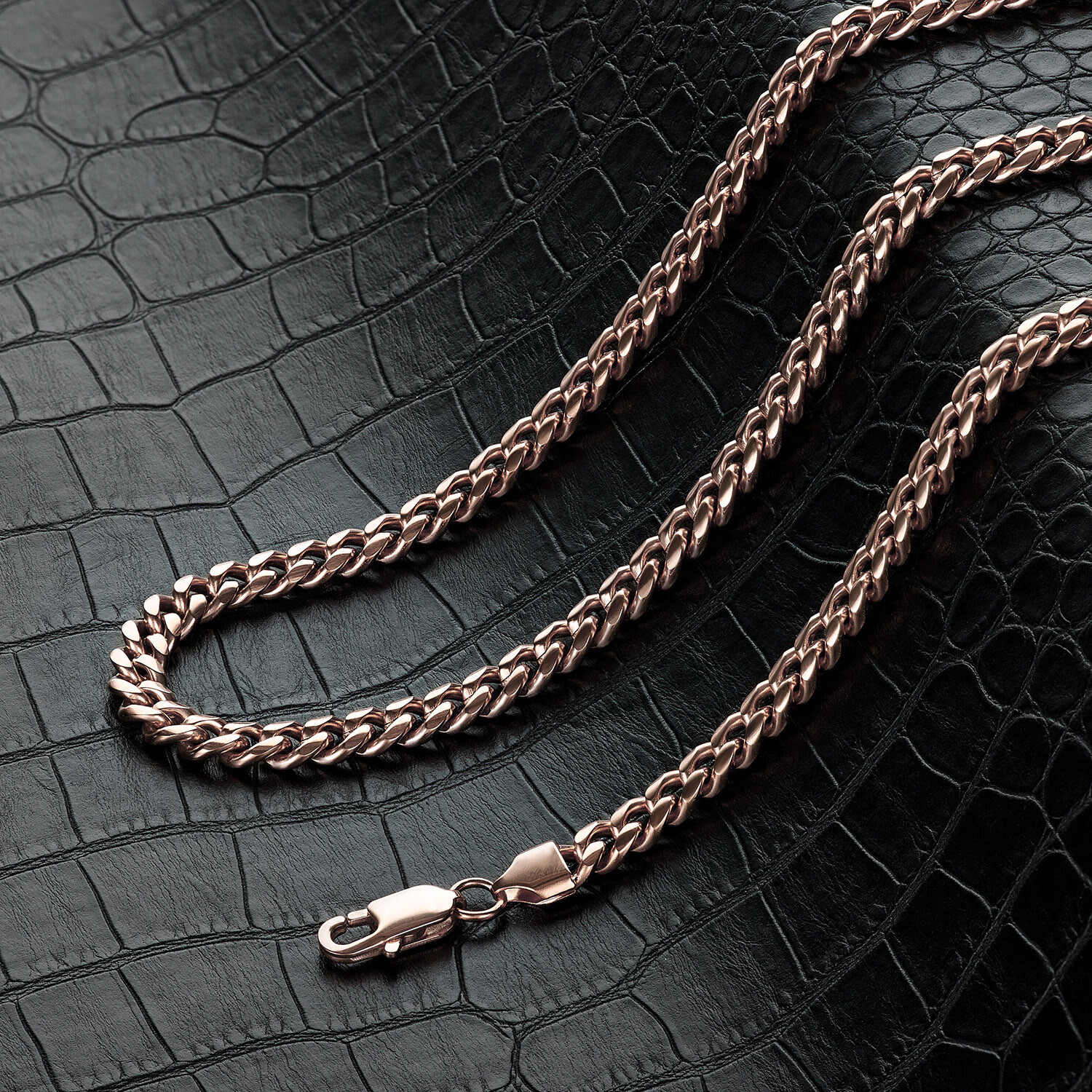 Rose Gold Plated Stainless Steel 7mm Rounded Curb Chain Necklace // 26"
