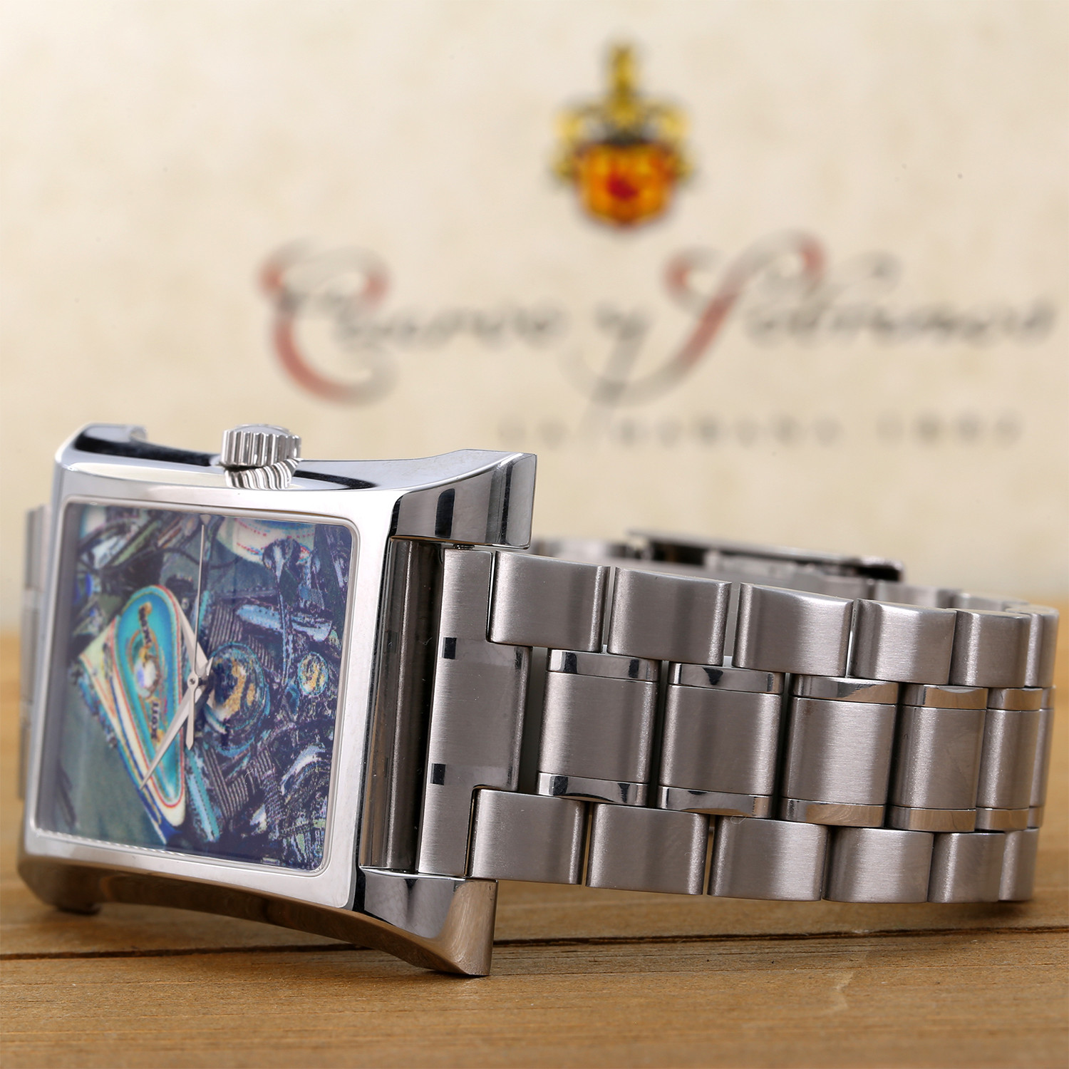 This is a limited edition timepiece featuring a collaborative design by award- winning photo-realist artist Scott Jacobs and Cuervo y Sobrinos. This watch features a recreations of Jacob's landmark painting "Live to Ride," and has been individually numbered and engraved with Jacob's signature.