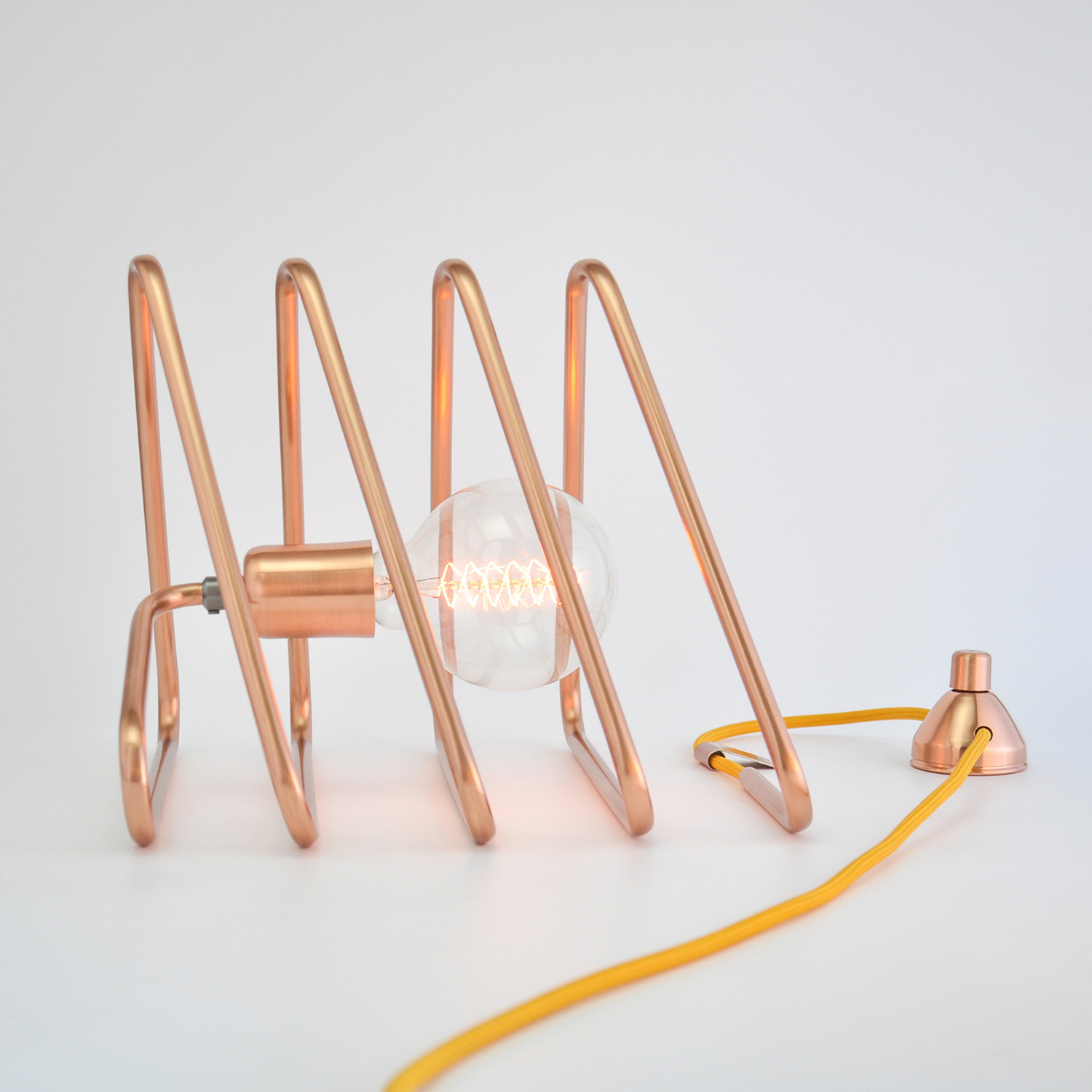 This industrial lightning collection is crafted from hand-bent copper pipes and black cables, and finished with a satin brush effect. They're magnificently varnished against tarnishing, and can be easily switched on/off with only one button. The brightness can be adjusted with its own dimmer, and the lamps take 60w incandescent bulbs (not included).