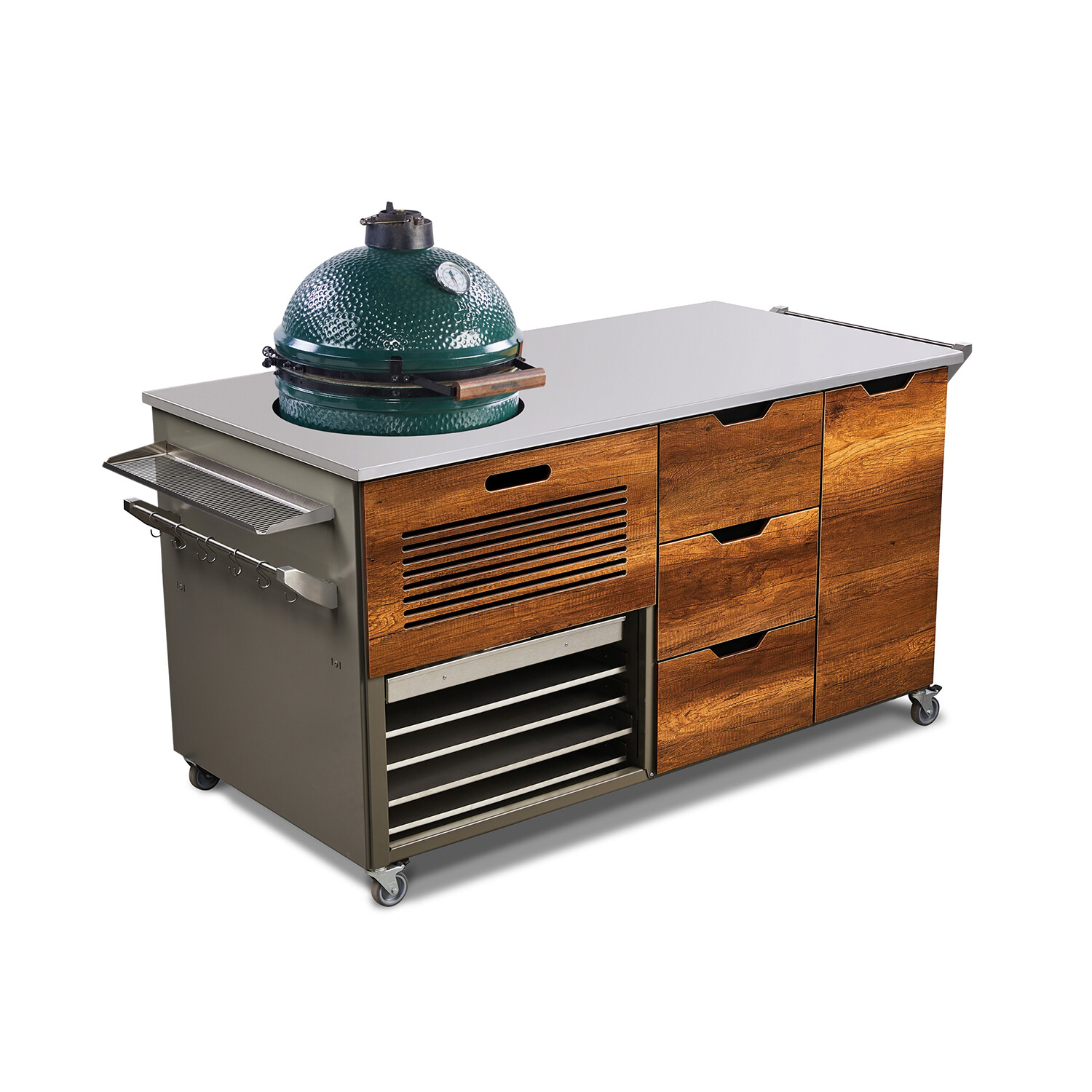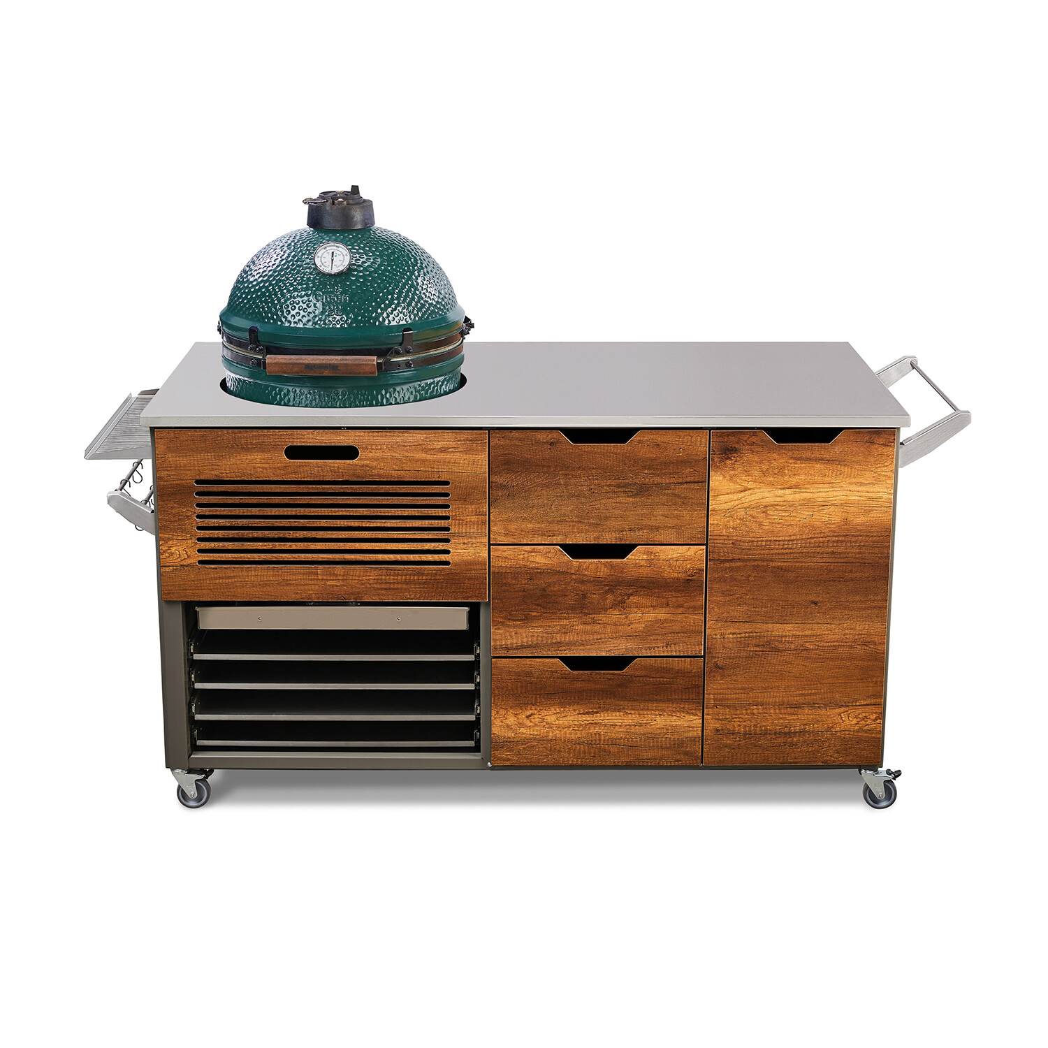 This island is a perfect fit for 21" Kamado Grills. The grill base is adjustable to take Kamado's of different height.