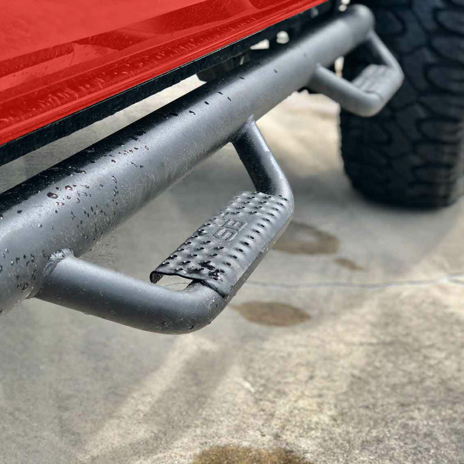 Packed with power and made to go anywhere, you're going to love to drop the top and hit the road in this bright red cherry bomb. The guys over at SoFlo Jeeps took a 2021 V6 Ford Bronco and upgraded it with Patagonia tires, silver alloy SFJ rims, and a 3.5” lift with a steering stabilizer to ensure control at high speeds and in off-road scenarios. Those extra inches of lift are accommodated with custom sidesteps, and SoFlo fabricated the steel front bumper in-house to lend extra safety and protection to every adventure. Finally, because this beefy ride is more than just meat and potatoes, the interior is upgraded with sleek black leather and accented with red diamond stitching for a look that is truly the cherry on top. But hurry. There's only one and it's going to be gone before you know it.