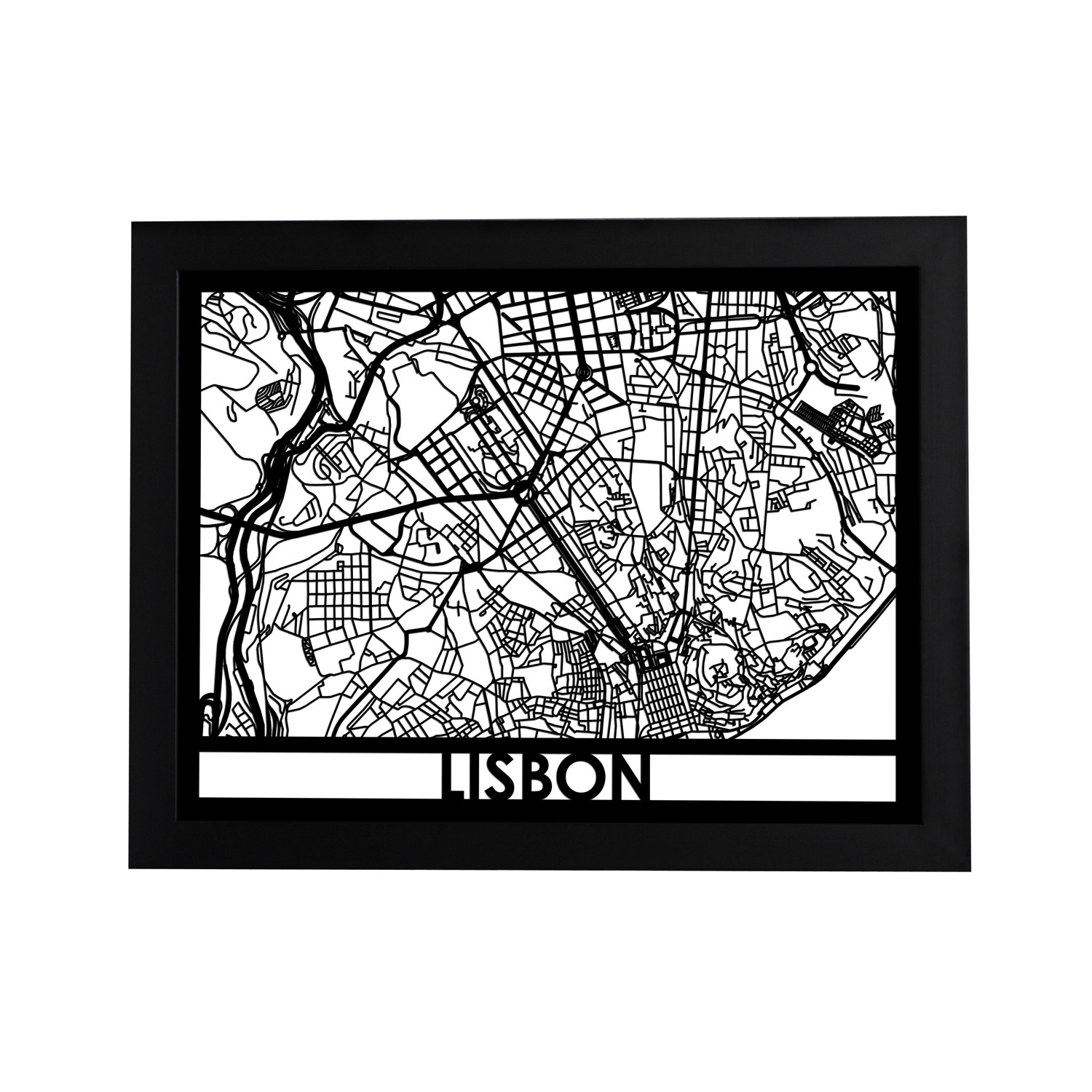 Celebrate Lisbon with this machined map. This highly detailed street map is made of high density EVA foam, and was cut with CNC precision machinery for a stunning, perfect silhouette. It's framed and ready to hang in your home, with black and white contrast providing a background for you to trace every road and river in your favorite city of all time.