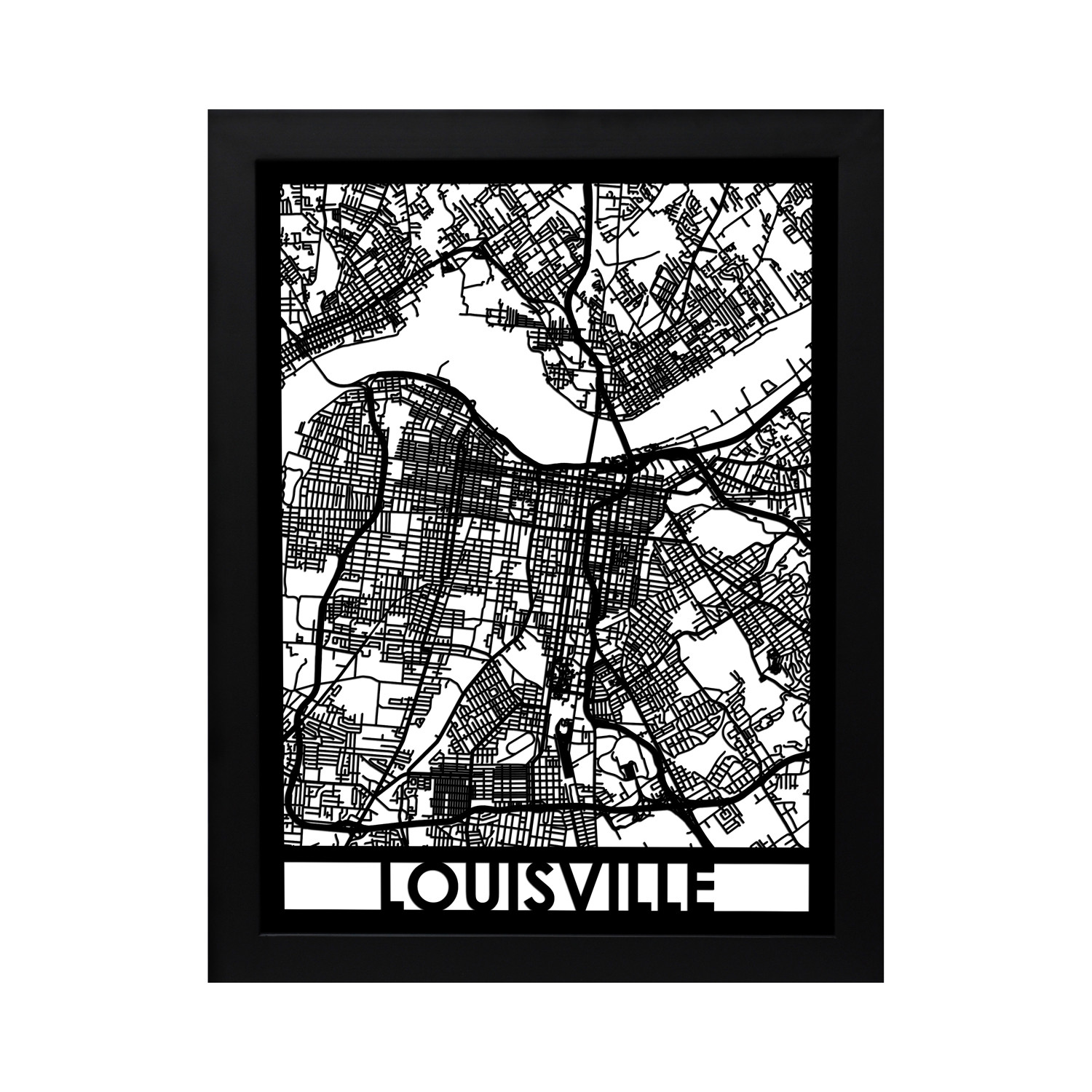 Celebrate Louisville with this machined map. This highly detailed street map is made of high density EVA foam, and was cut with CNC precision machinery for a stunning, perfect silhouette. It's framed and ready to hang in your home, with black and white contrast providing a background for you to trace every road and river in your favorite city of all time.