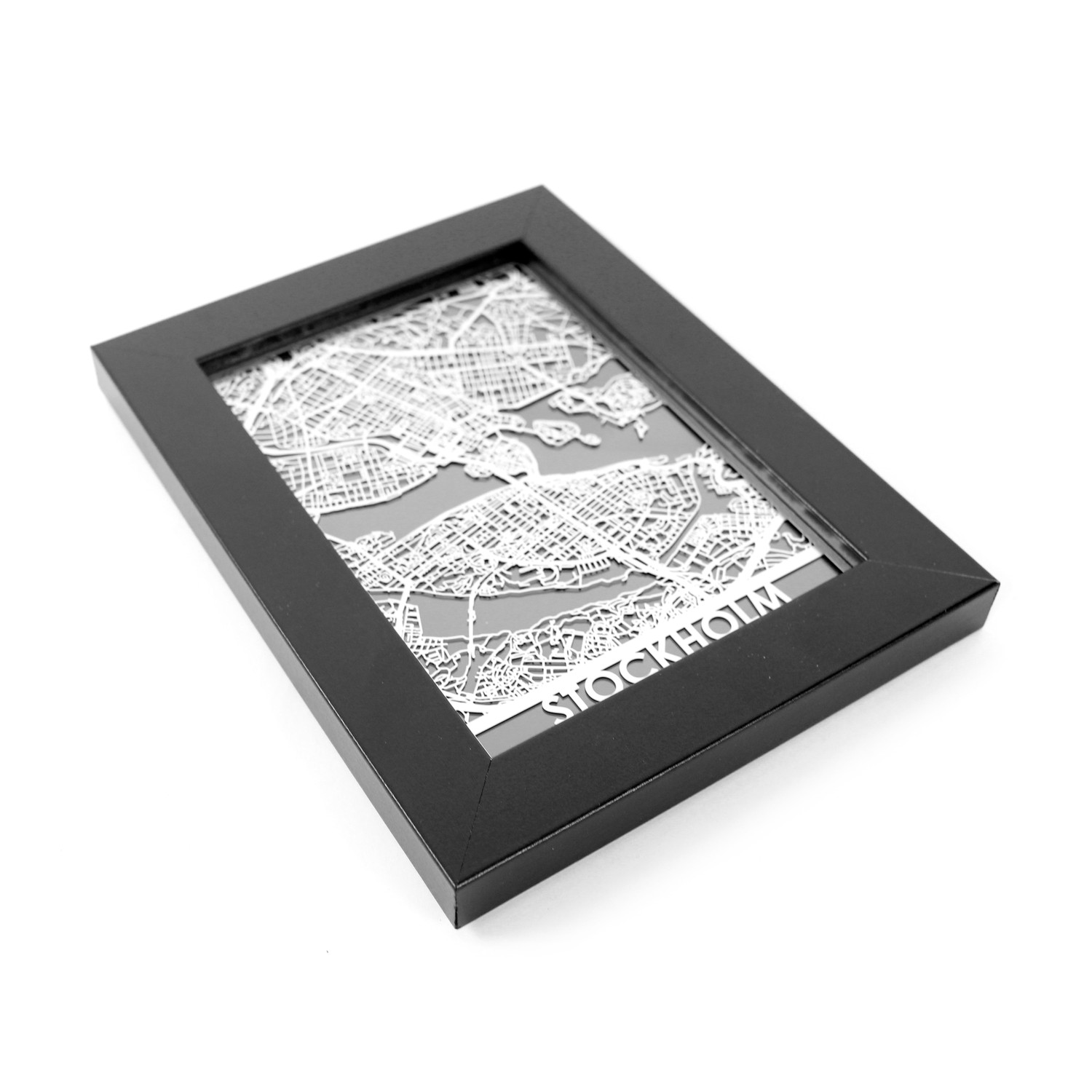 These intricately cut, thin steel maps are a the perfect way to make a bold statement about the cities you love. Whether you're a native, a transplant, or just full of wanderlust for the world, these informative art pieces are the perfect way to dress up your walls with industrial-inspired style. Cut with CNS precision machinery, each map is set in a handsome, matte black wood frame.