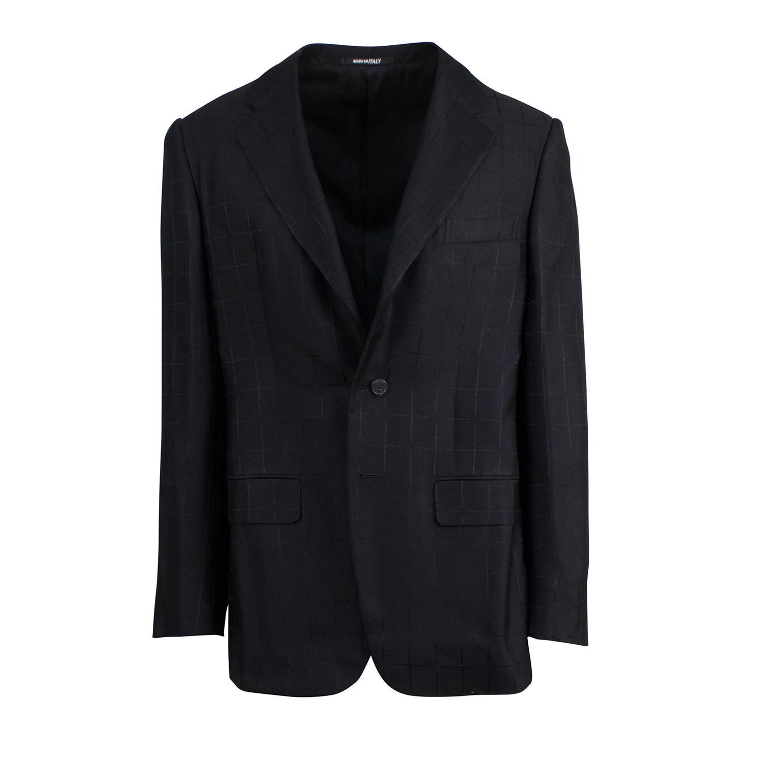Windowpane Silk 3 Roll 2-Button Sport Coat // Black (Euro: 50R)