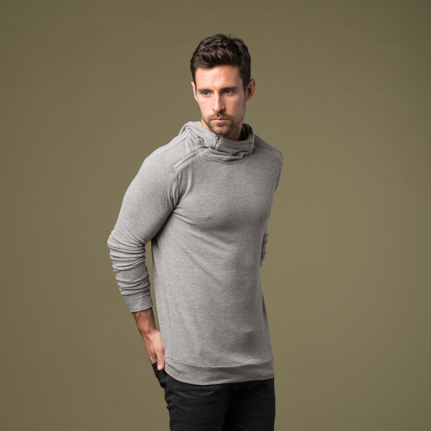 d.brand is all about designer-level detailing, minus the ubiquity. This Sebastian Sweater, with its unique zipper spanning from shoulder to neck, is the perfect combination of fine fabrication, great fit, and fashionable design elements.