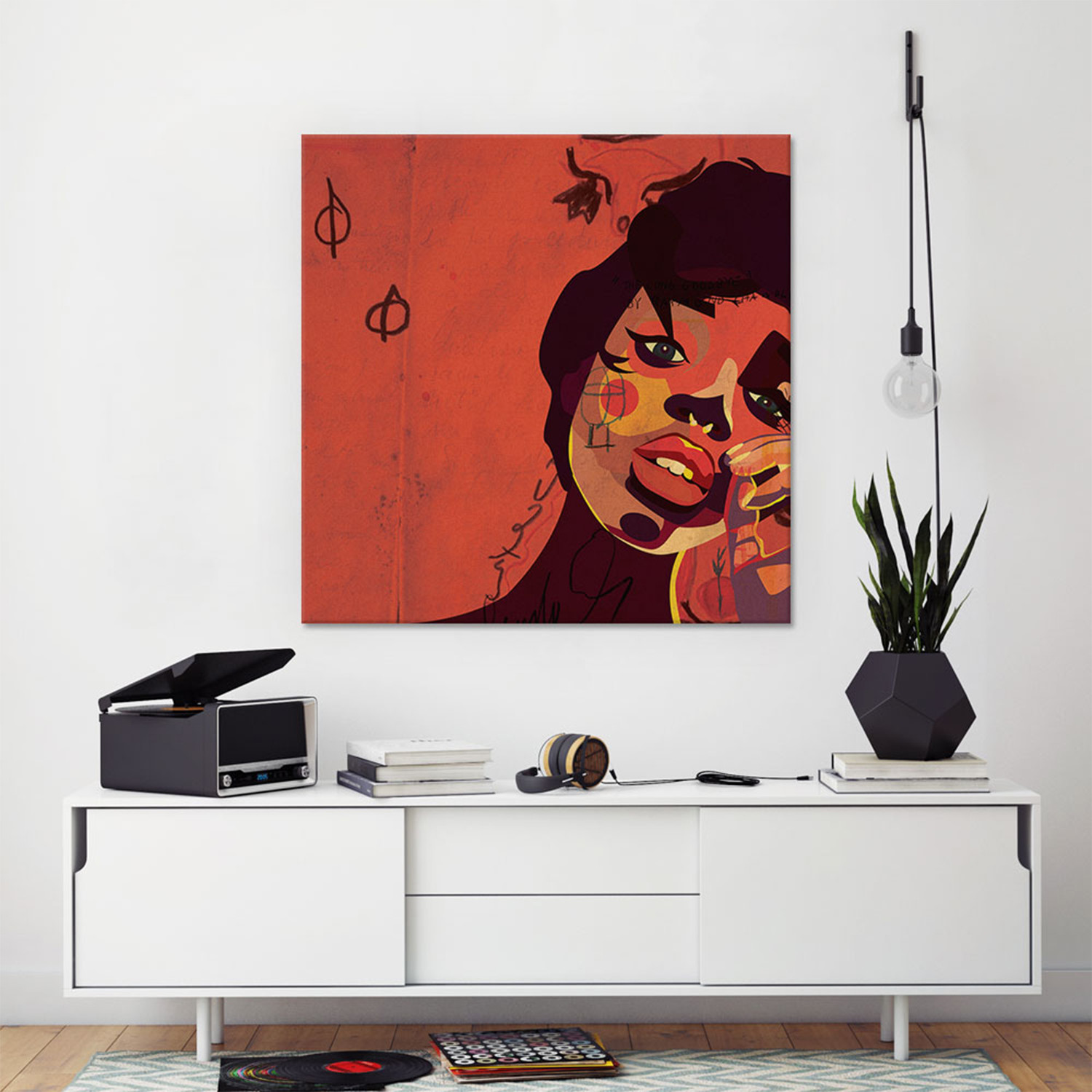 Vaguely abstract and boldly colorful, this sophisticated canvas print from DaiChris Art will add a serious splash to your space. Inspired by the famous Pop Art style of the 1980s, the composition of this portrait creates a swirl of warm hues that will draw every eye.