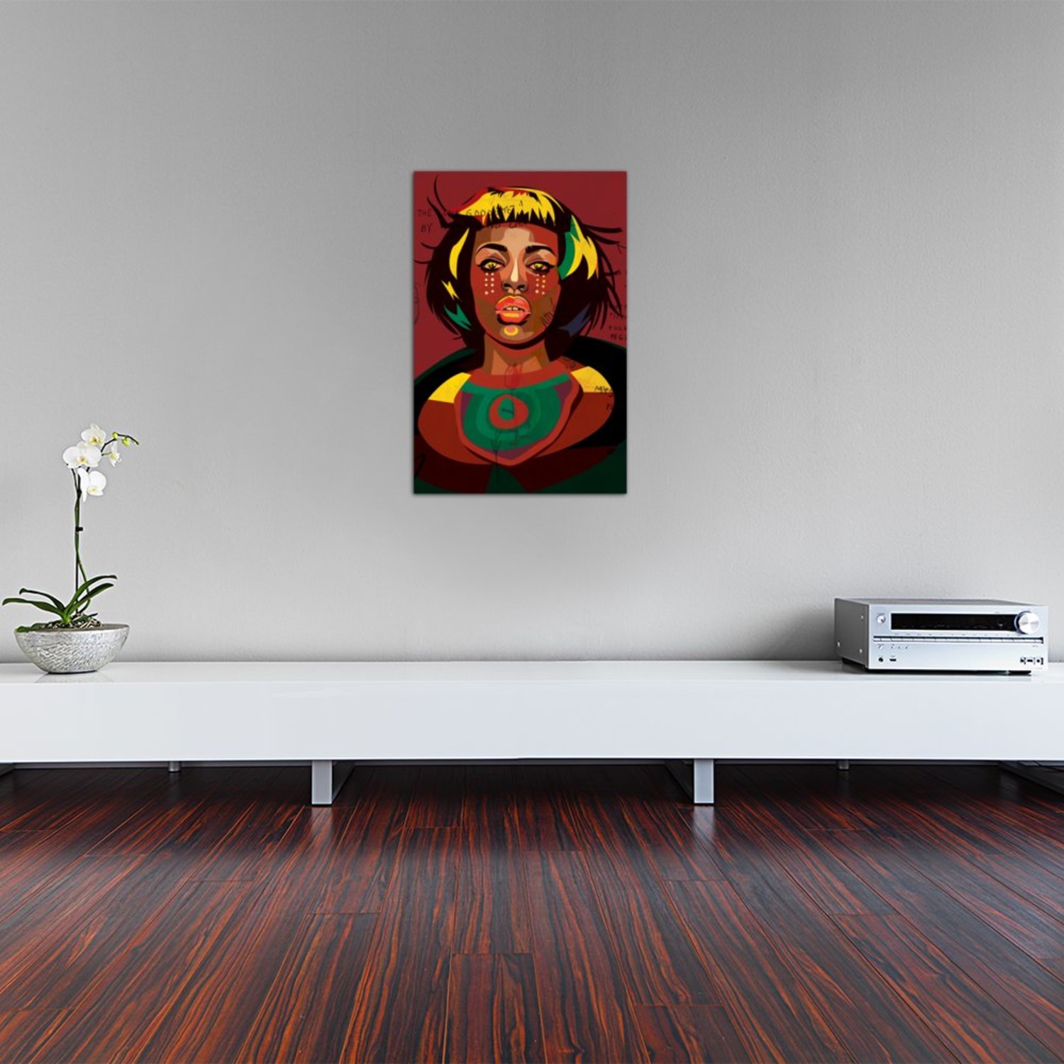 Vaguely abstract and boldly colorful, this sophisticated canvas print from DaiChris Art will add a serious splash to your space. Inspired by the famous Pop Art style of the 1980s, the composition of this portrait creates a swirl of warm hues that will draw every eye.