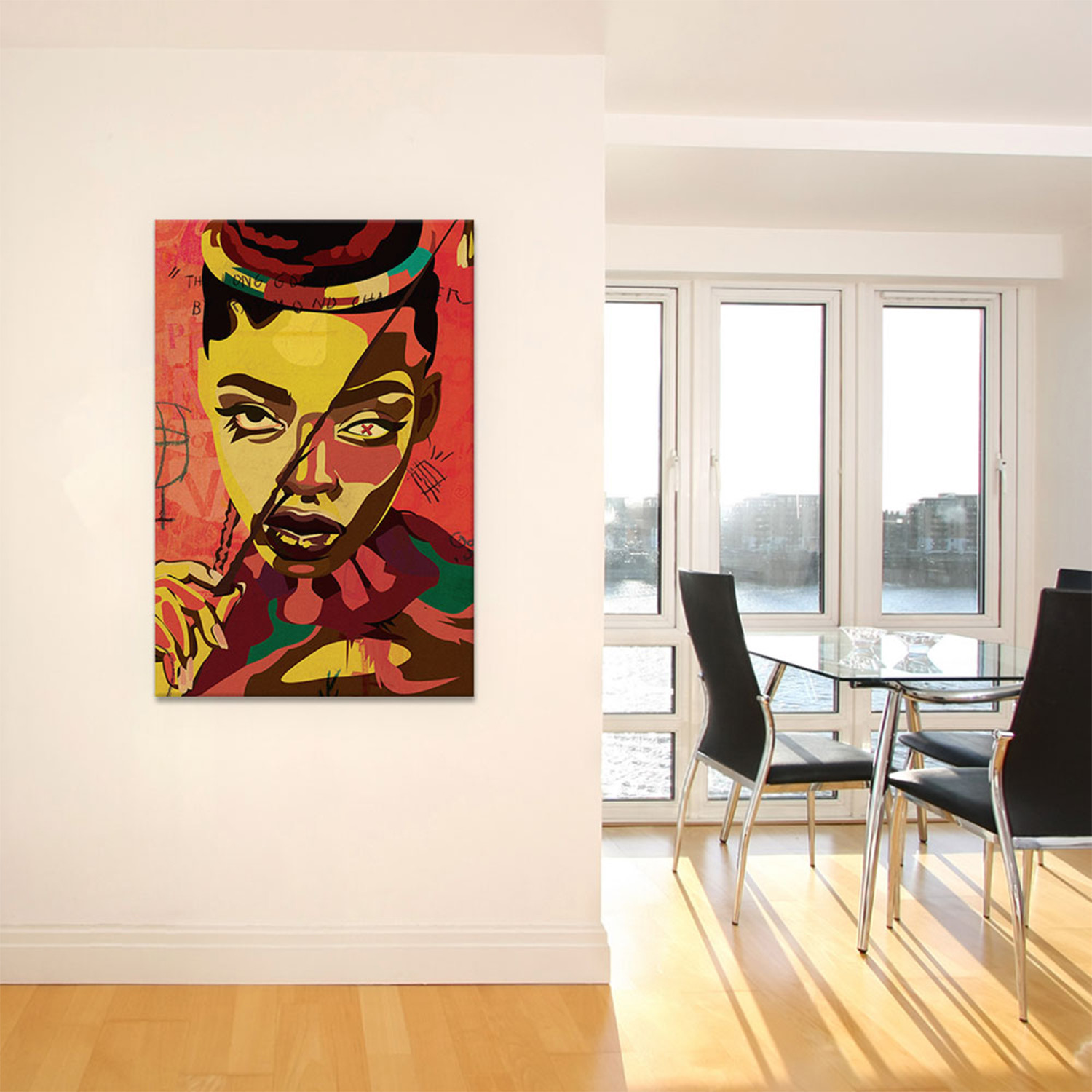 Vaguely abstract and boldly colorful, this sophisticated canvas print from DaiChris Art will add a serious splash to your space. Inspired by the famous Pop Art style of the 1980s, the composition of this portrait creates a swirl of warm hues that will draw every eye.