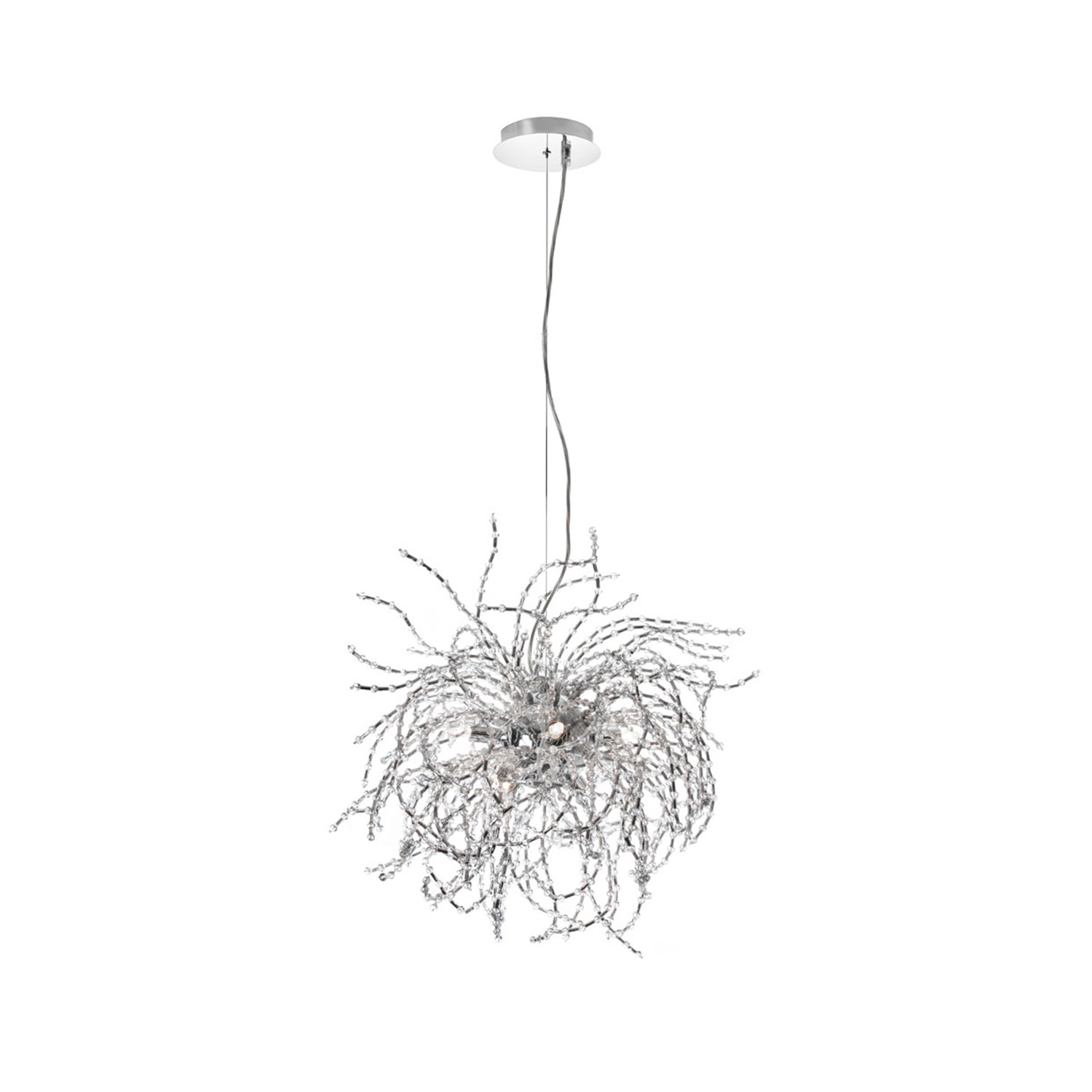 The Pendant Crystal Chandelier has all the features of a contemporary lighting centerpiece, accented by polished chrome branches spiraling off into a multitude of directions, each one developing a visual line of interest that adds to this elegant yet modern must-have.
