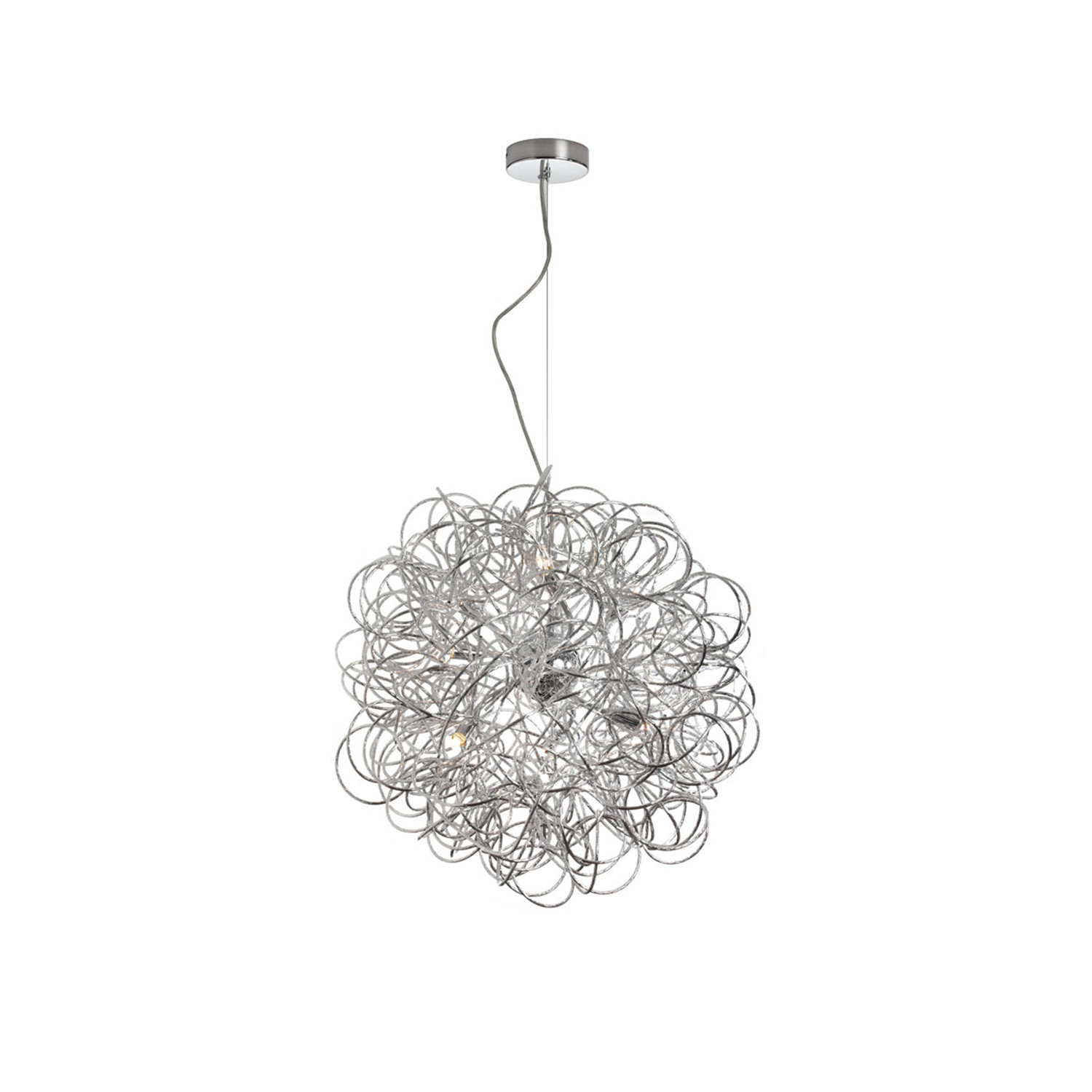 A tangled web is woven from the Polished Chrome Wire Pendant, a chandelier for the contemporary, who needs more from their modern home furnishings. Its unusual form is sure to inspire you every day, no matter what room this unique piece lives in.