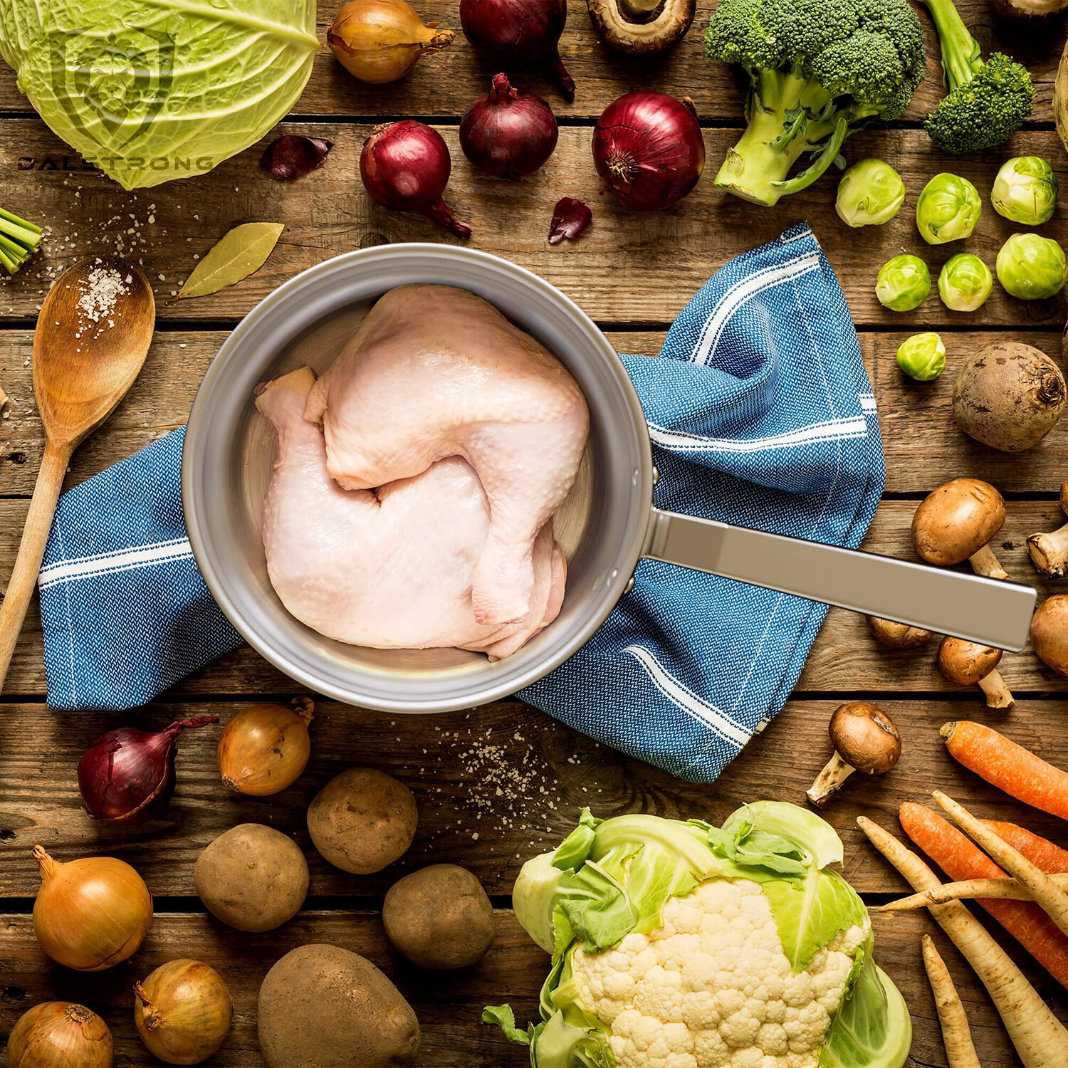 A leader in engineering and painstaking craftsmanship, the Dalstrong Avalon Series rises above the competition with a best-in-class 5-ply copper core foundation for superior heat conductivity, control, and responsiveness; thick gauge layers of nonreactive 18/10 stainless steel, and premium aluminum for enhanced heat retention. Super versatile with an eye-catching design, this cookware is compatible with all stovetops and optimized for induction. It's oven and broiler safe too so you can easily transition from cooking on the stovetop to finishing in the oven.