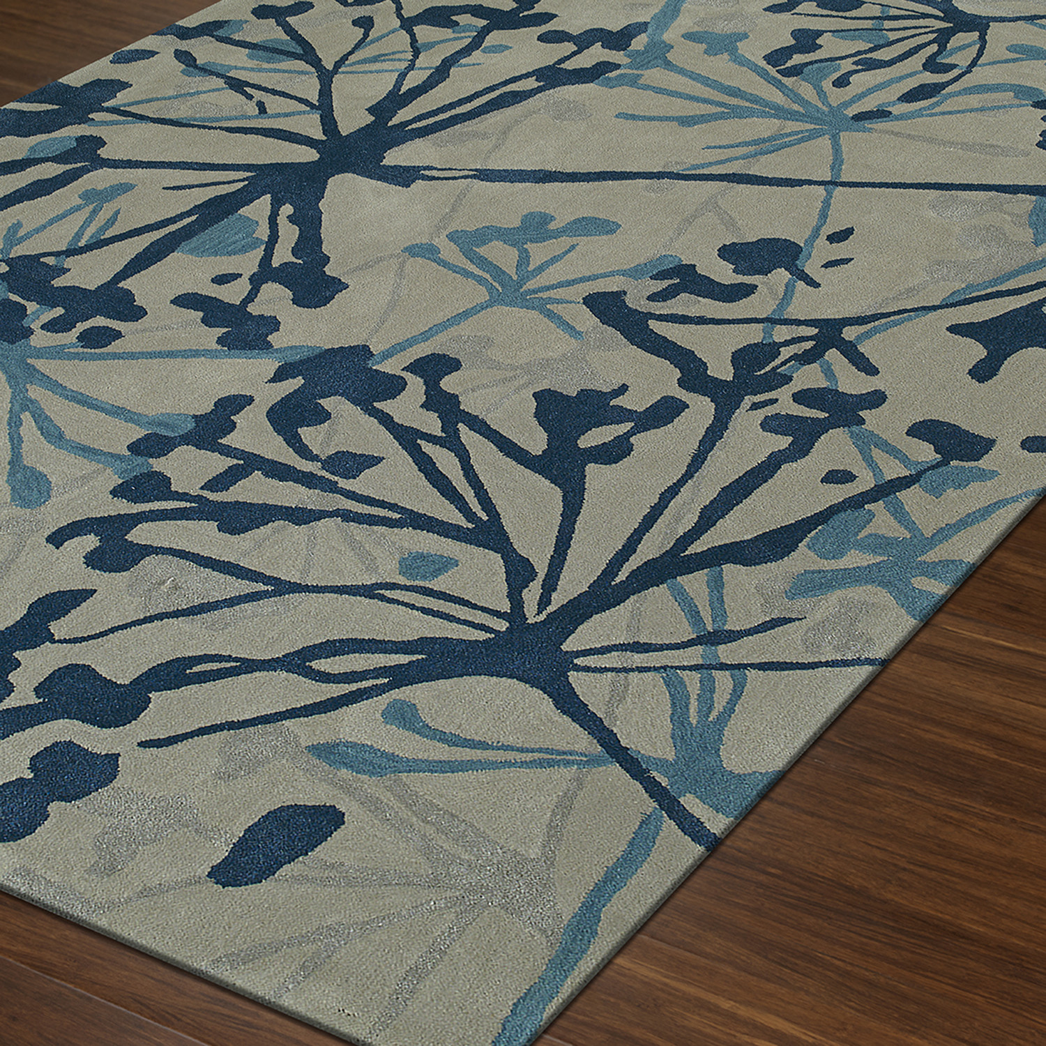 Zenith // Blue + Grey Contemporary Floral Area Rug