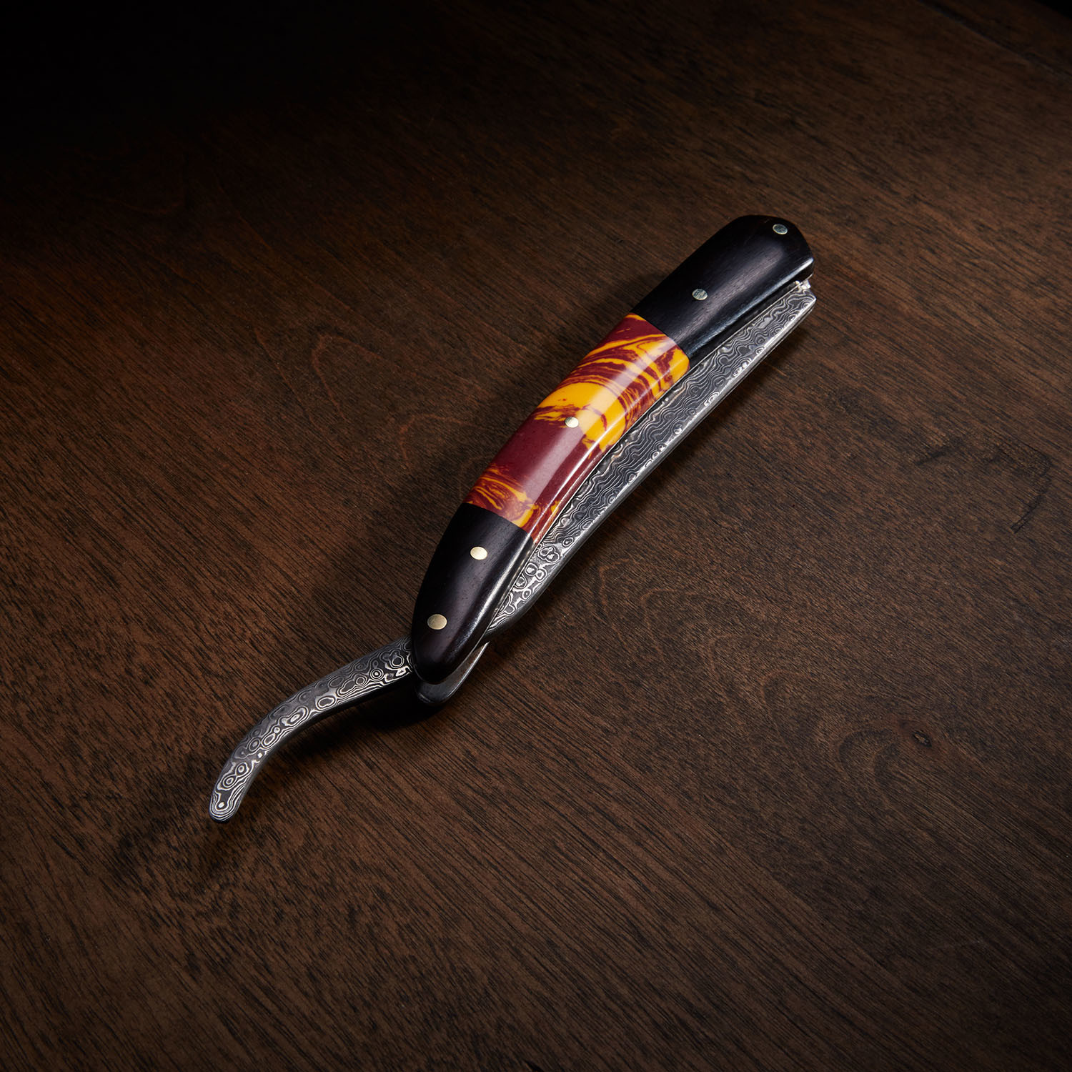 All of that history and signature aesthetic has been funneled into the Gioc straight razor. Made by hand, it arrives perfectly honed and shave-ready, with a unique composite handle that adds a rugged, contemporary flair.