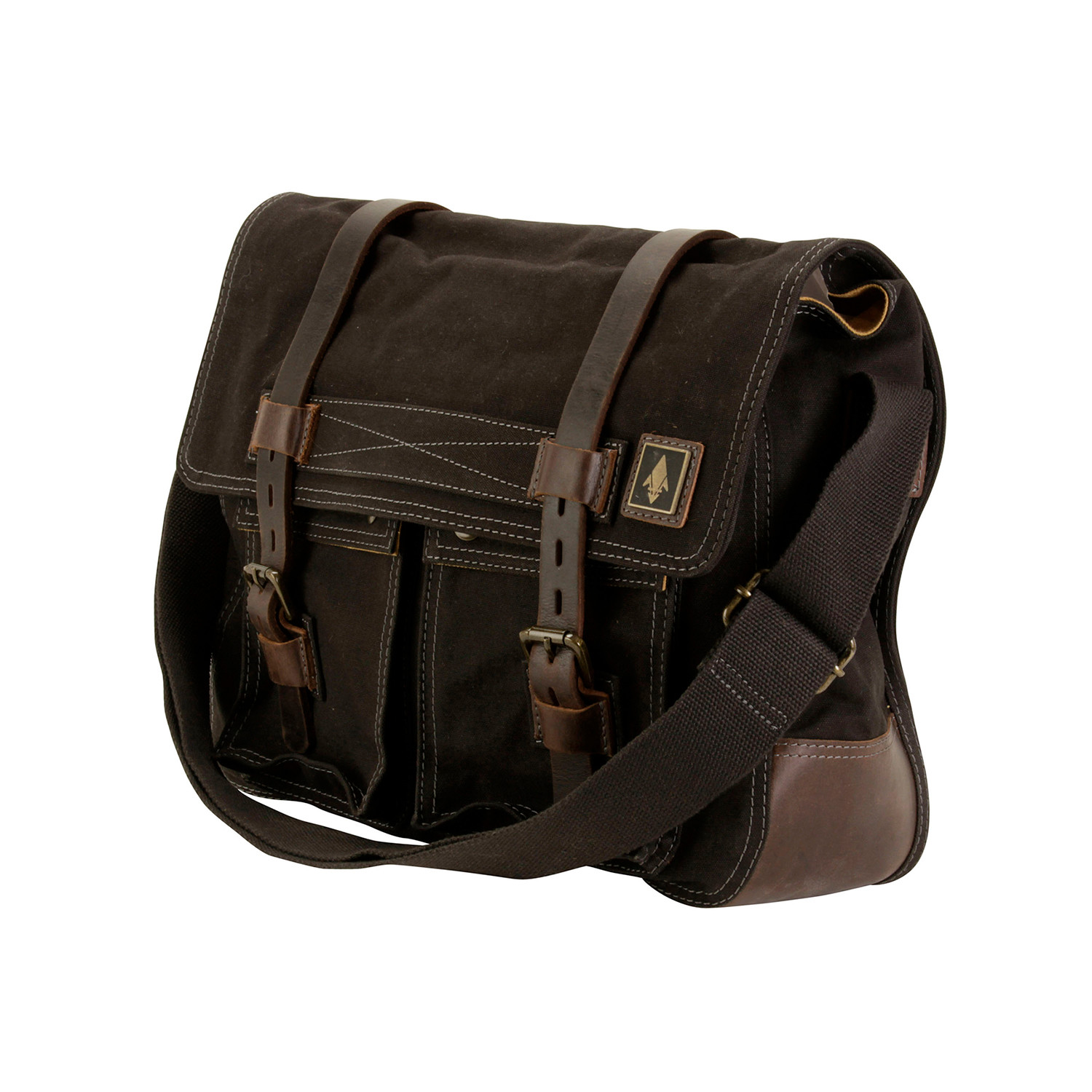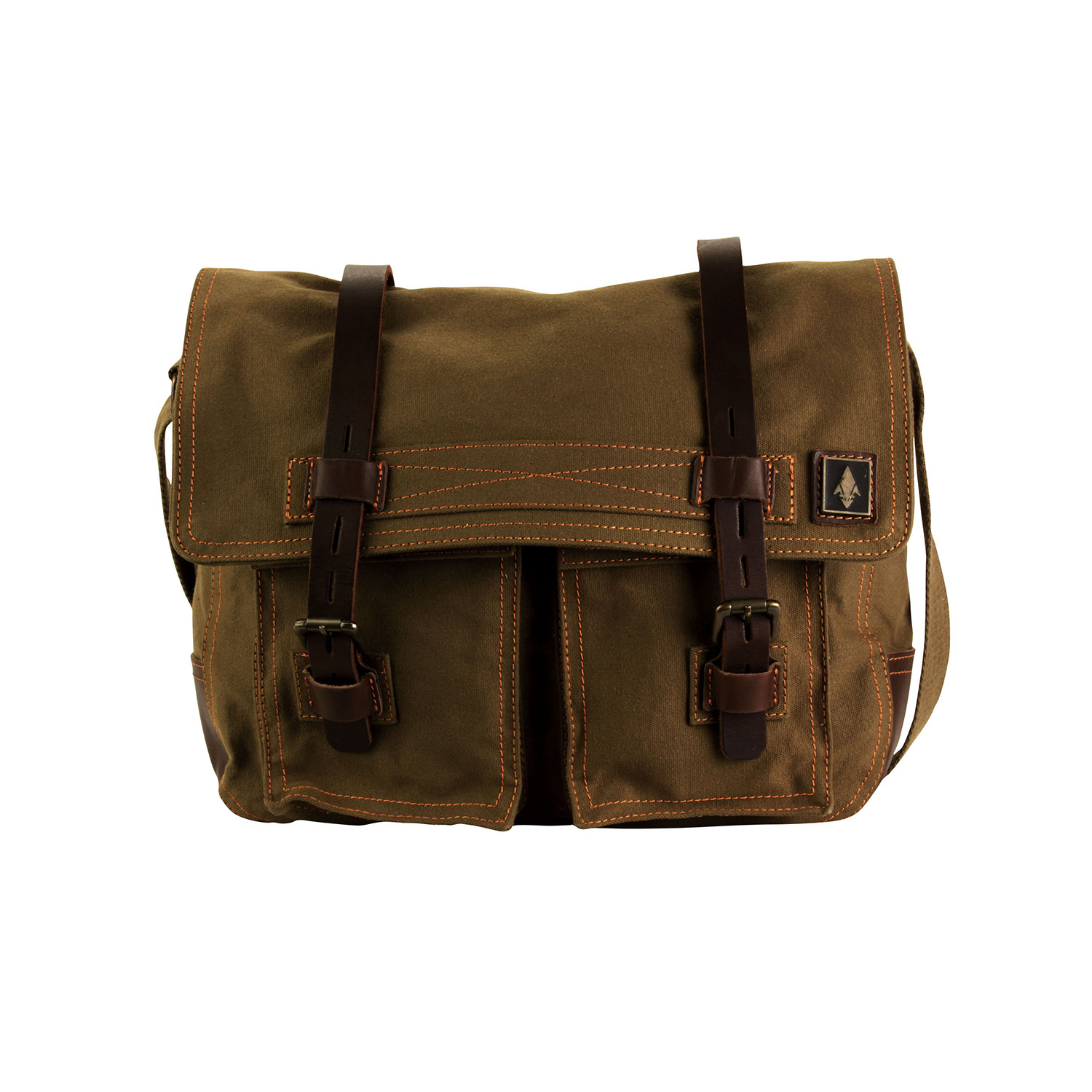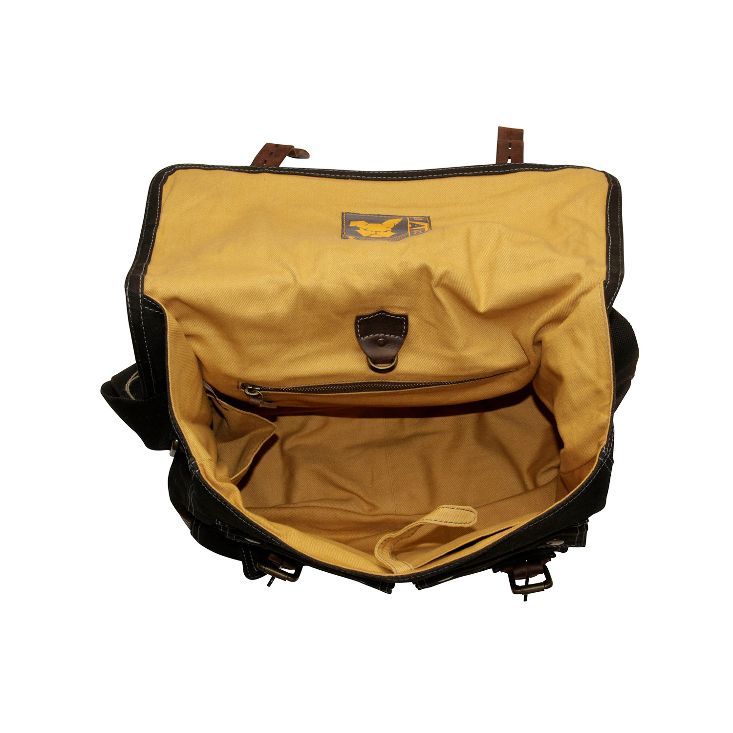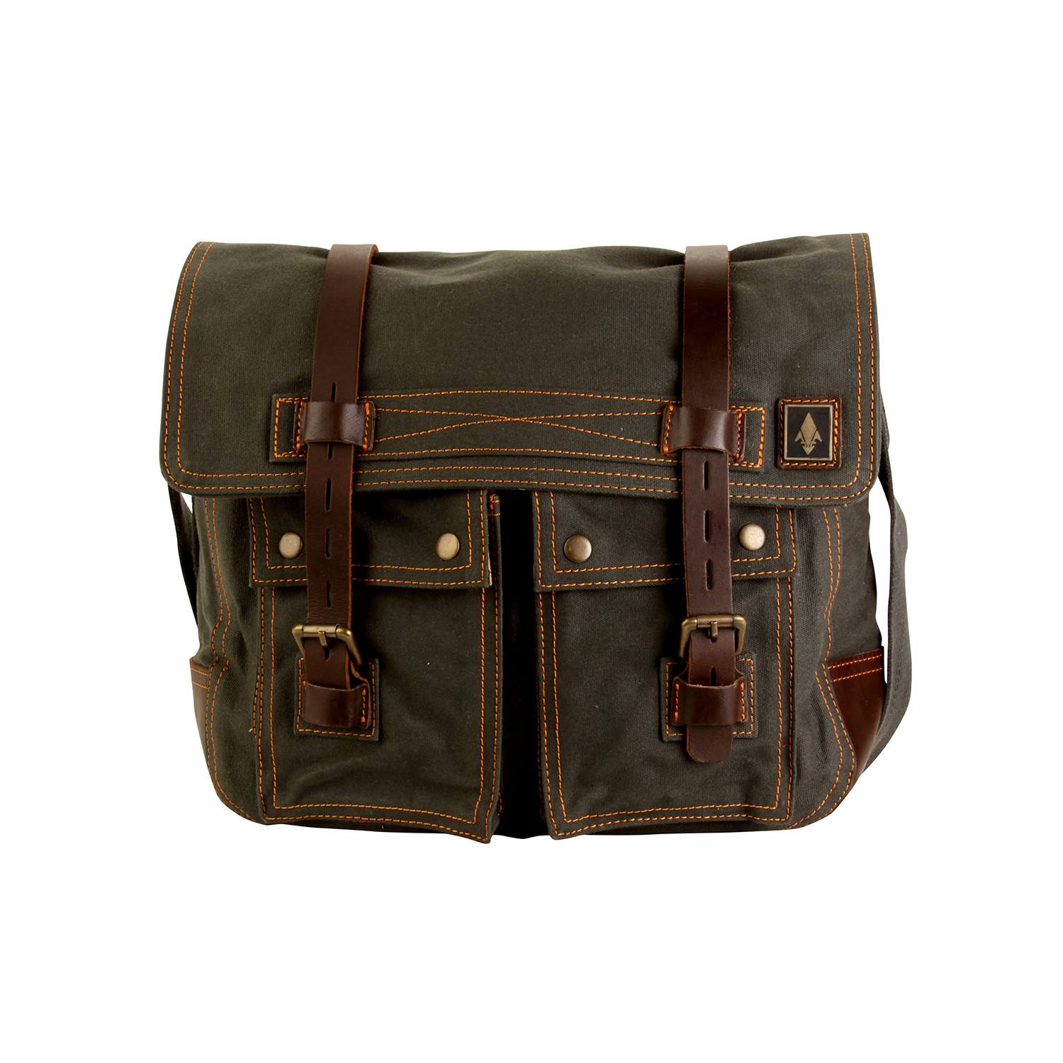The Haversack by DamnDog is a messenger-style shoulder bag, expertly made from waxed Swamp canvas and full-grain, top shelf buffalo leather. Their flagship model and still their best seller, this bag feature a vast area of pockets inside and out, with insane durability and individual character that only grows over time.