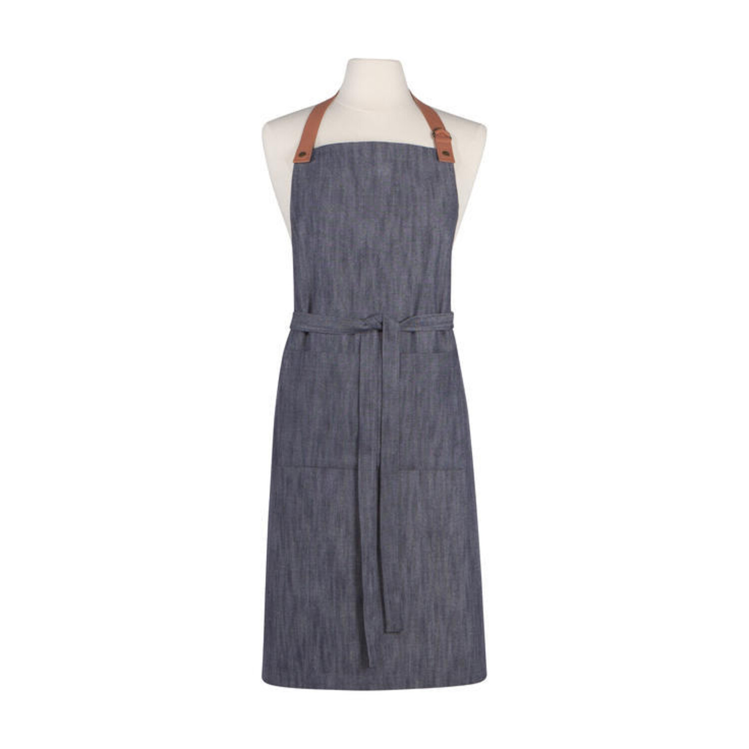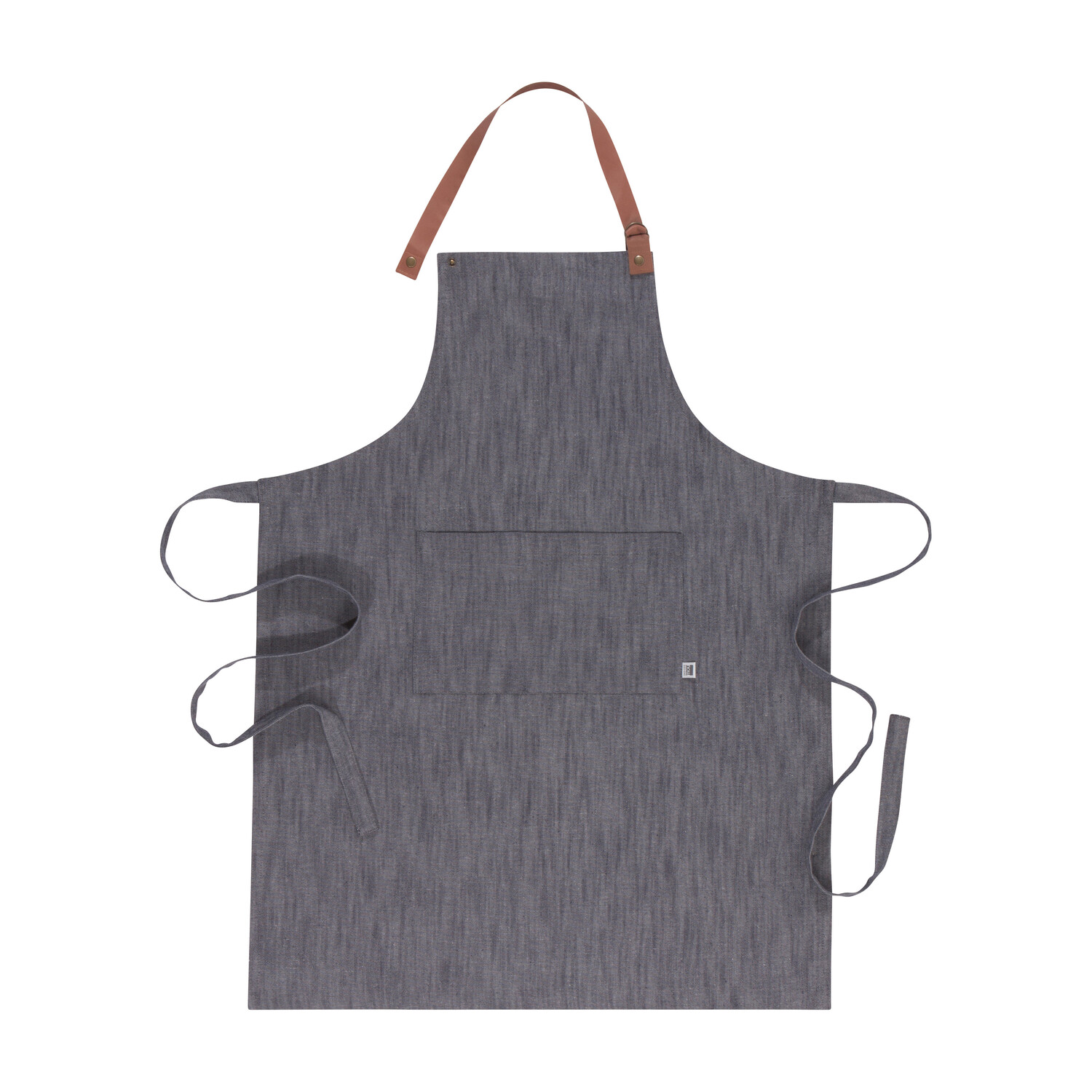 Plastic water bottles are recycled into polyester creating an eco-friendly, wrinkle-resistant apron for a variety of uses. Renew Apron's adjustable leather neckstrap can be removed for easy cleaning.