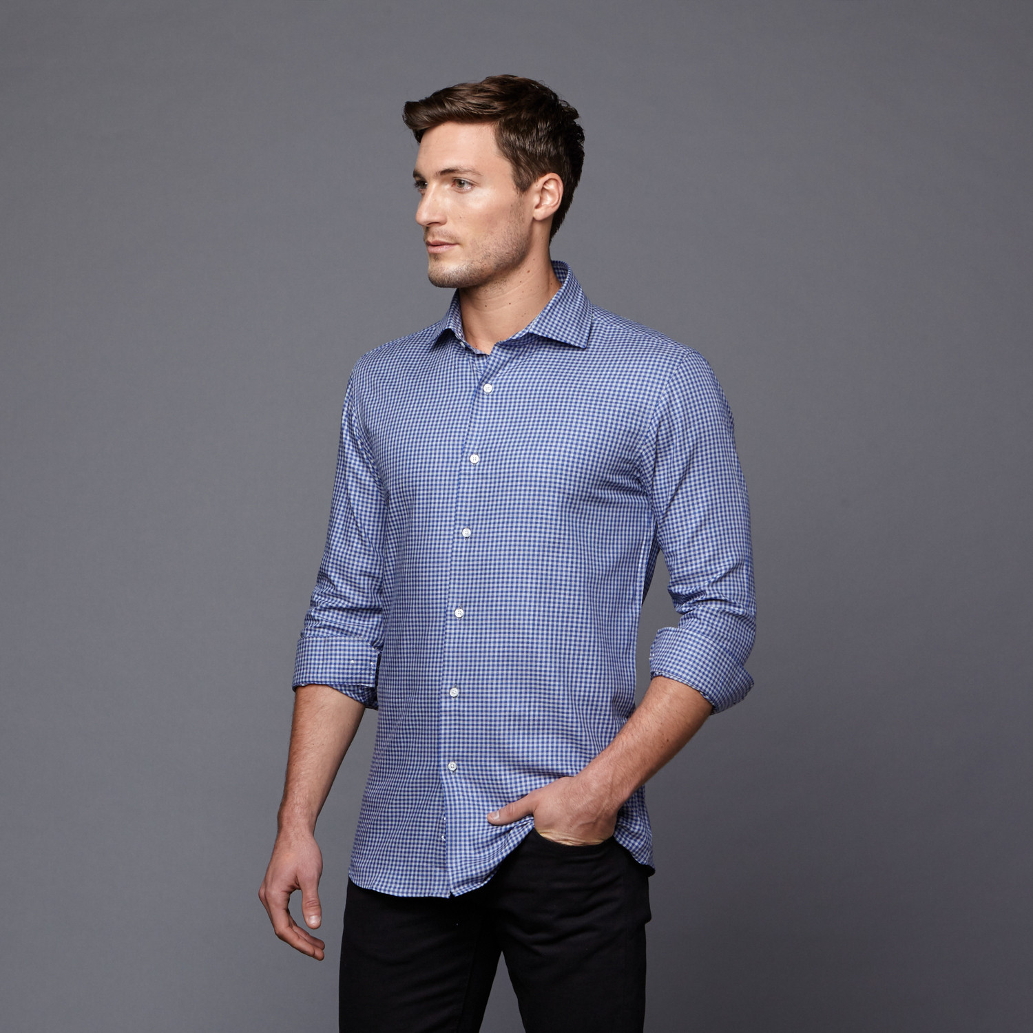 Jesse Button-Up Shirt // Blue + Grey