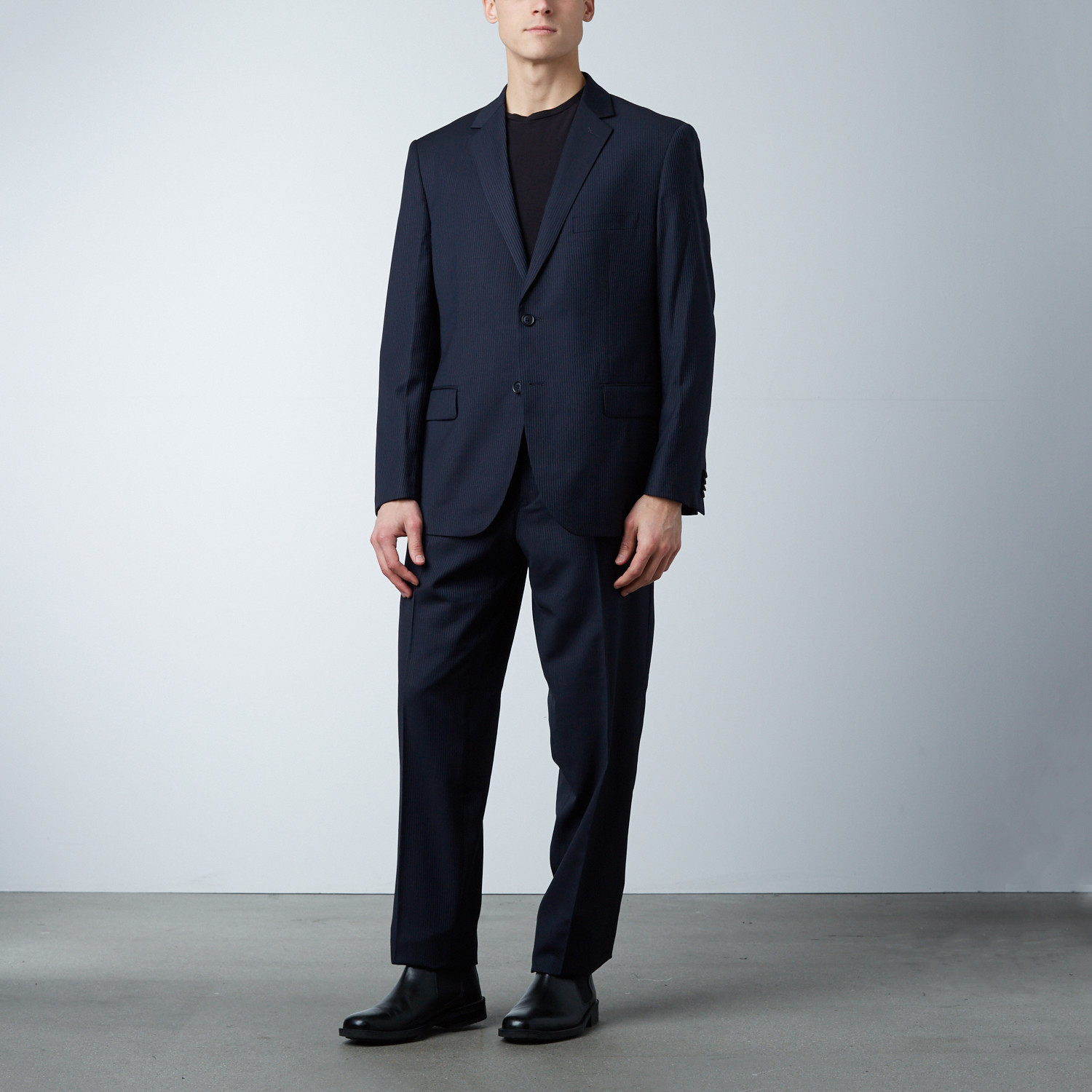 The perfect way to be dapper and business-appropriate, this fine wool suit will add inimitable style to any wardrobe. Its double vent and darting will keep you looking trim and proper, while the trousers boast a button-through and plain welt pocket for added elegance when you're at that next big event. Whether you conquer the boardroom in the full suit, or separate out the blazer and pant for extra longevity, this two-button is an absolute must.