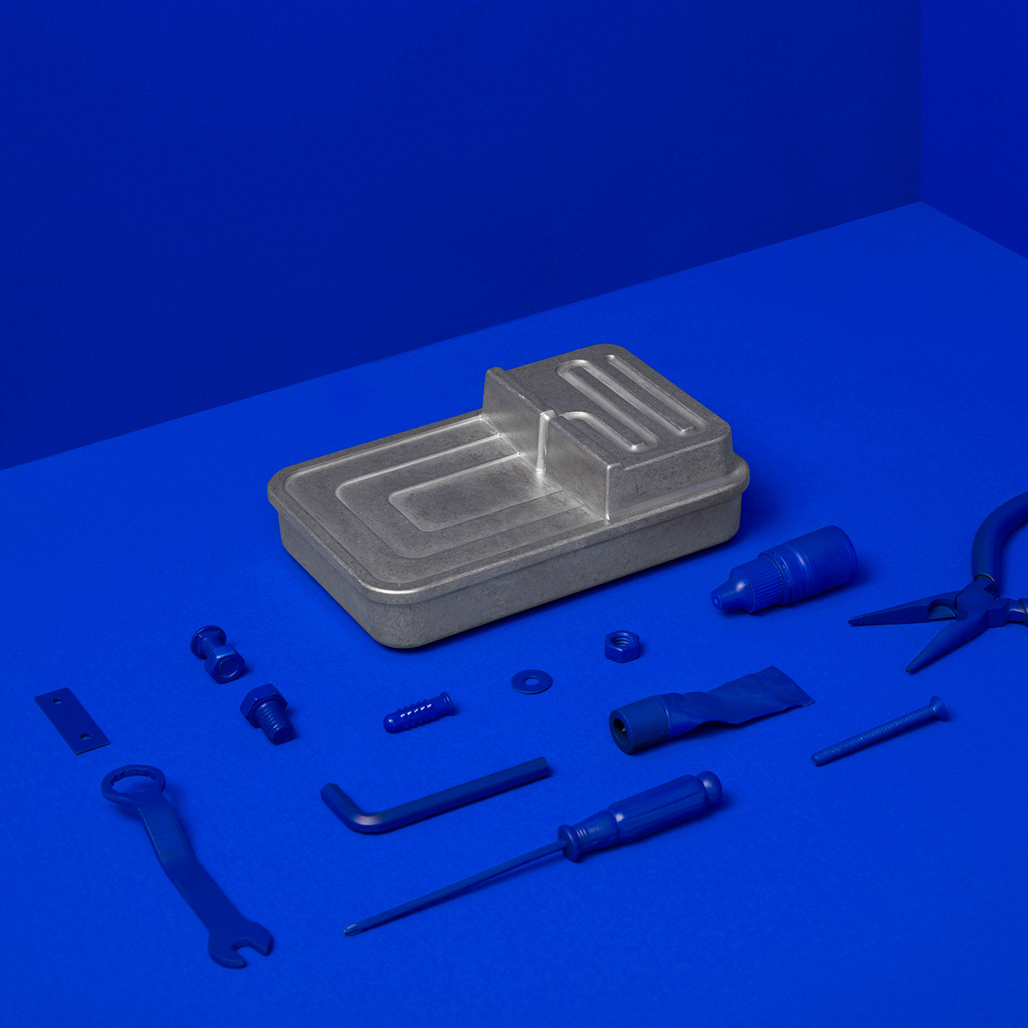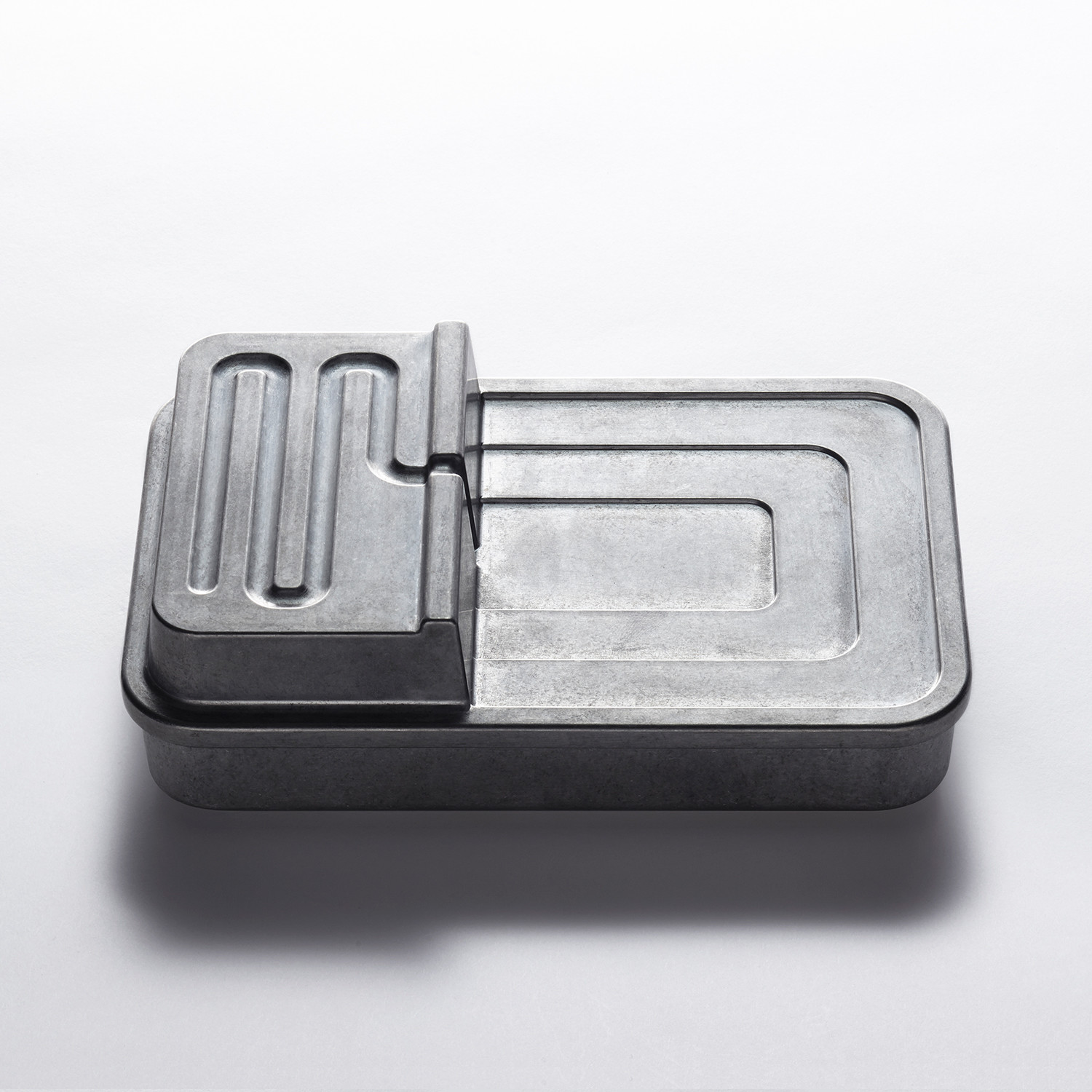 The Waterfall version of Danzo's Landscape desktop organizer features two levels of elevation. The meandering river on the highland is engraved to prevent objects rolling off, while the lower lake is ideal for storing slightly larger items such as keys, lighters, credit cards or even a small wallet.