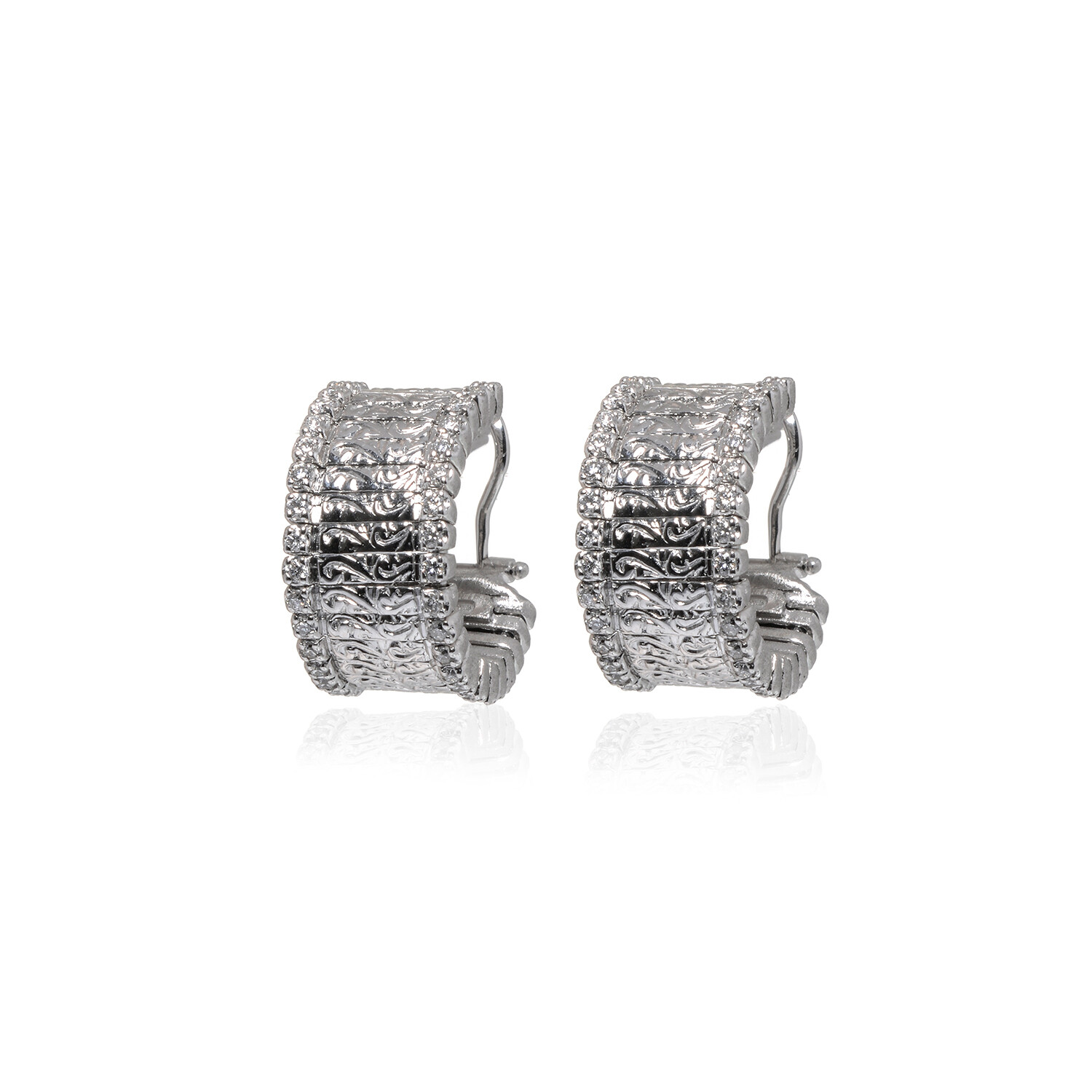 Roberto Coin // 18k White Gold Diamond Huggie-Hoop Earrings // Store Display