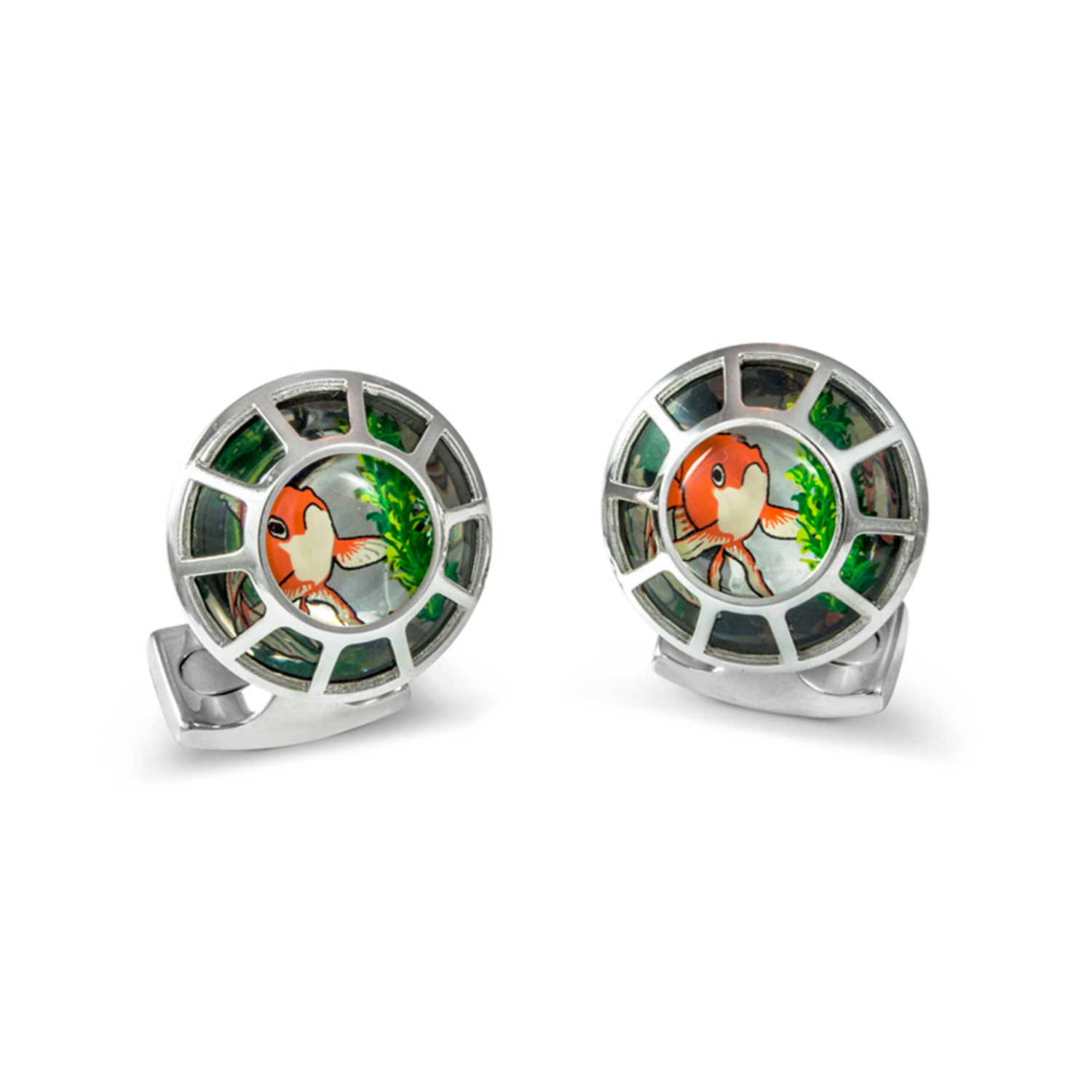 With real depth and detail, these stylish porthole cufflinks allow your cuffs to create their own little fish sanctuary. This pair of high quality cufflinks are made to last a lifetime. With domed oval spring link fittings featuring the Deakin & Francis logo for authenticity, these cufflinks come beautifully packaged in a unique presentation box.