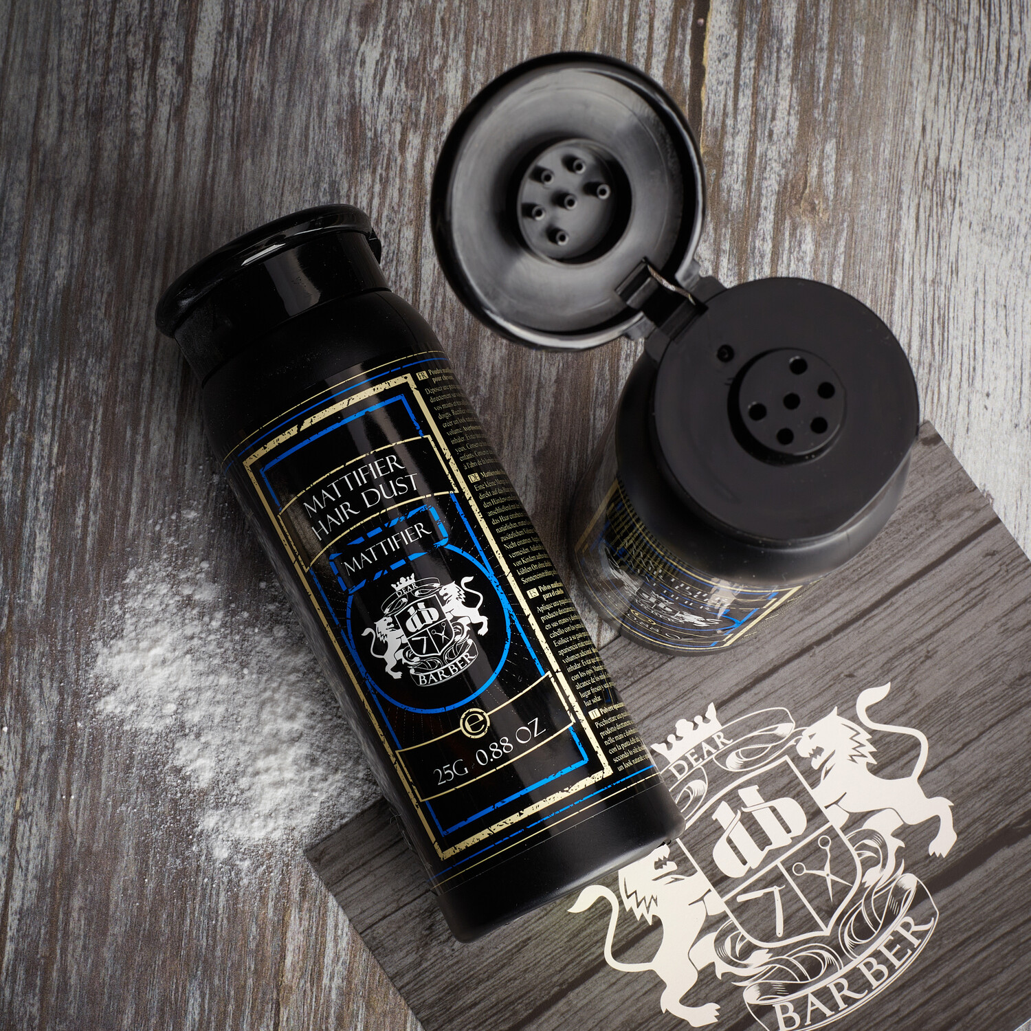 Dear Barber Mattifier Hair Dust adds volume, texture and strong hold to all hair types and lengths, with a natural, matte finish. The water-based formula can be quickly applied, reworked throughout the day, and easily washed out. Infused with Dear Barber’s signature “With Confidence” scent, you’ll be left looking and smelling fresh.
