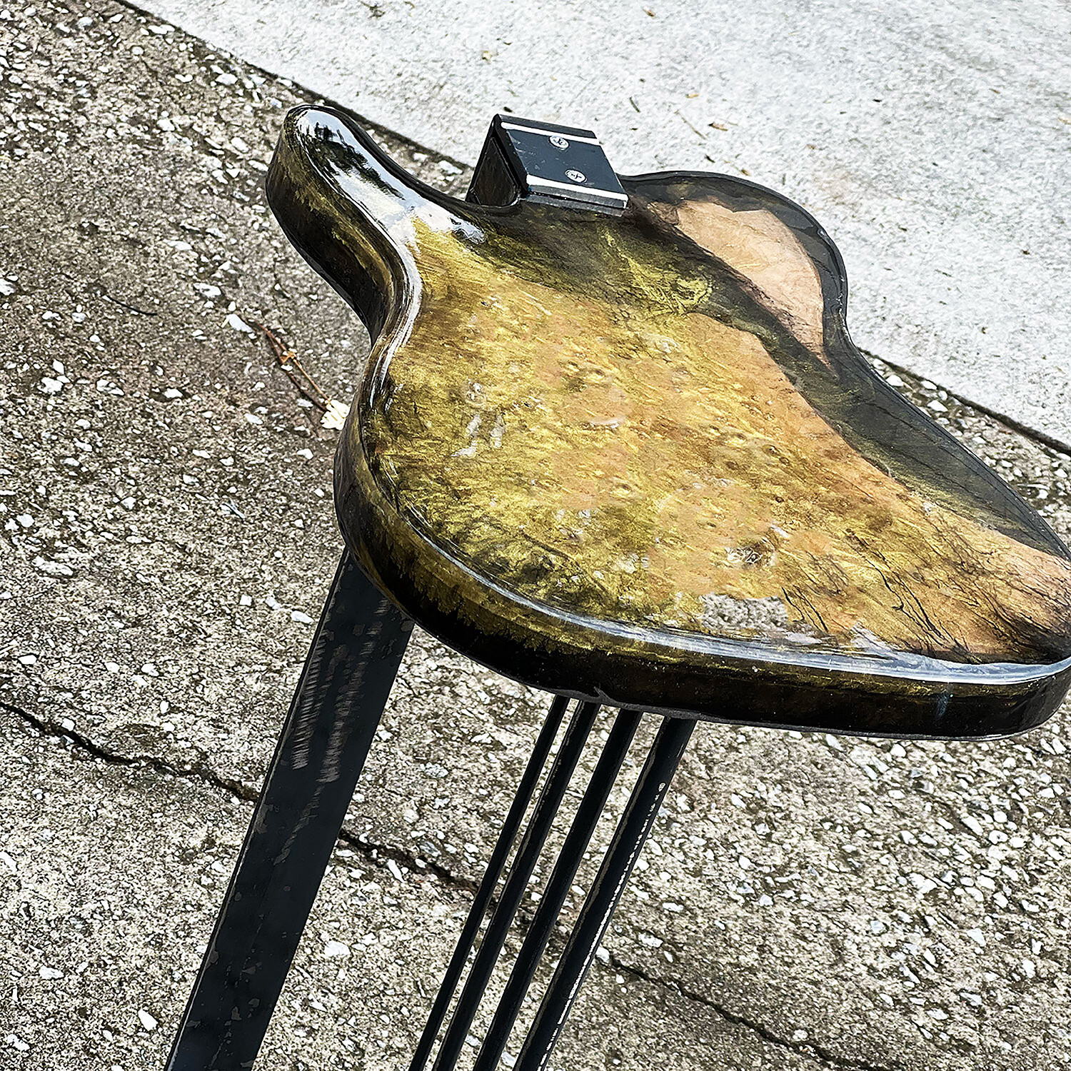 Philadelphia, Pennsylvania born artist Deb Cikovic is best known currently for her paintings in acrylic pouring as well as epoxy work, she uses a multitude of techniques and materials to create pieces that mean something to every individuals minds eye. This collection of epoxy Fender Telecaster and Stratocaster side tables are an example of Cikovic's creative vision and artistic skill and a nod to rock n' roll vibes.