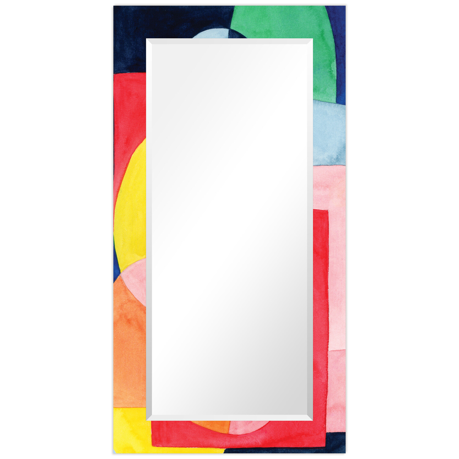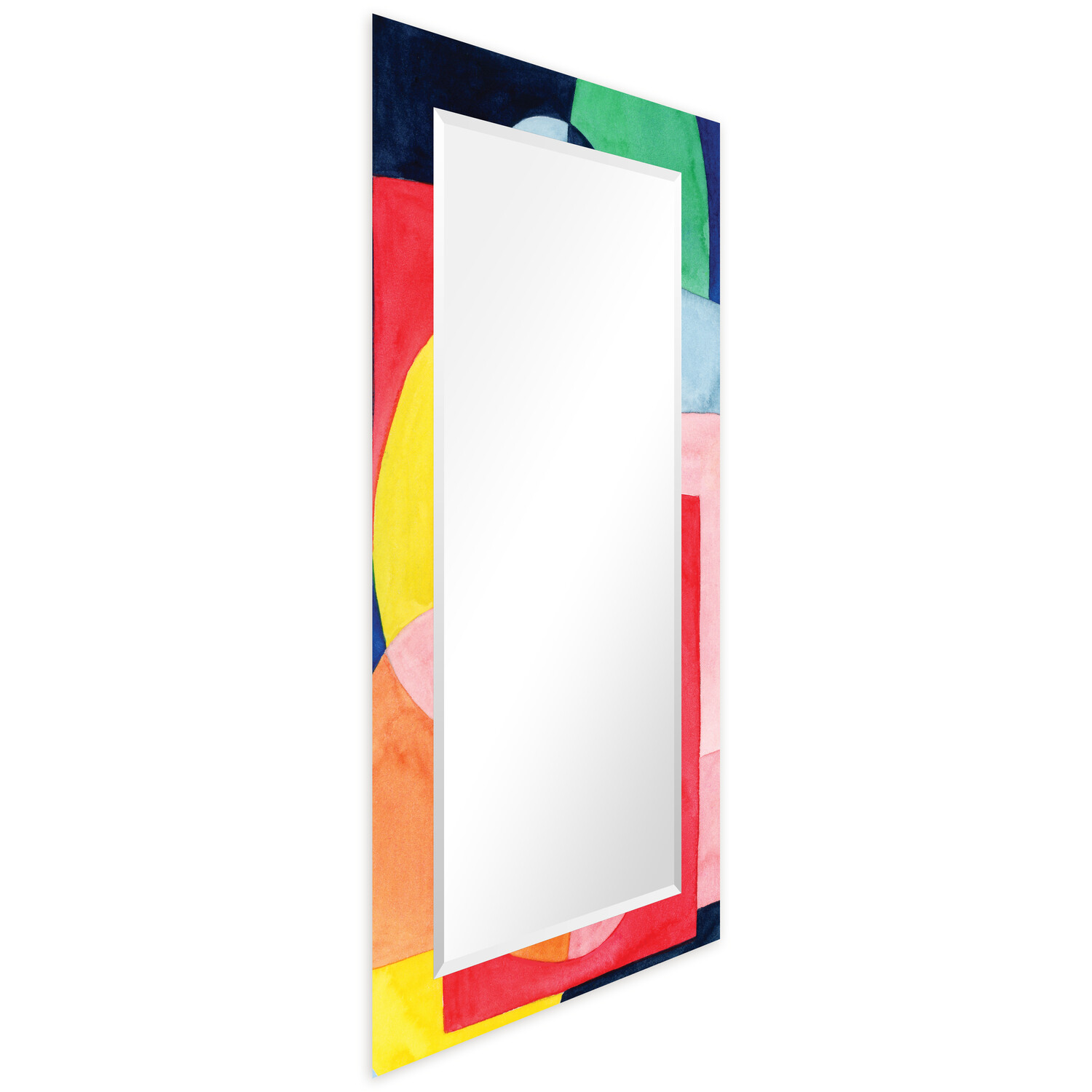 Launder Rectangular Beveled Mirror on Free Floating Reverse Printed Tempered Art Glass