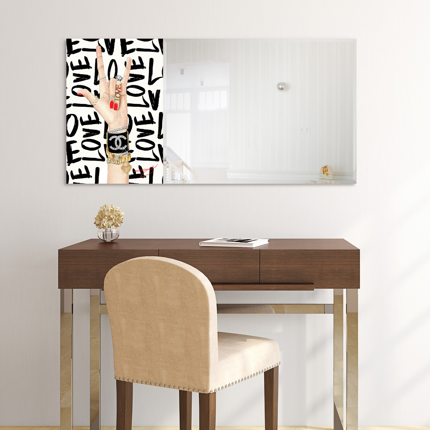 Loved Rectangular Beveled Mirror // Free Floating Printed Tempered Art Glass