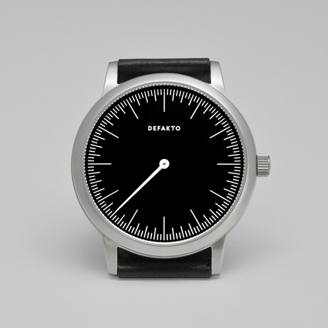 The one-handed, German-made Defakto Detail is a purist's watch offering a characteristic time synthesis. Its strong contemporary aesthetic is made up by an ultra flat high quality stainless steel case. Behind its solid screw down case back a Swiss made quartz movement Ronda 715 brings the watch to life.