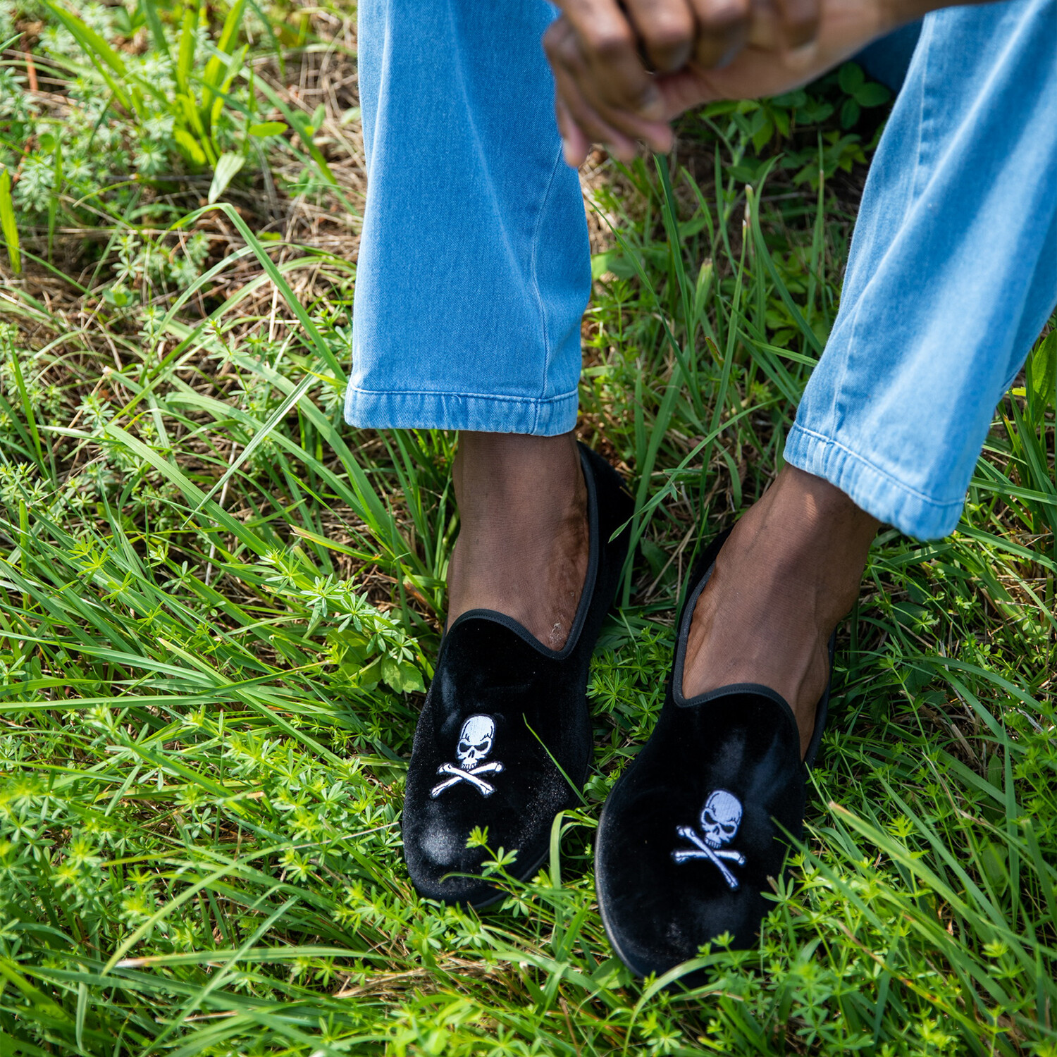 Skull + Bones Velvet Slipper // Black
