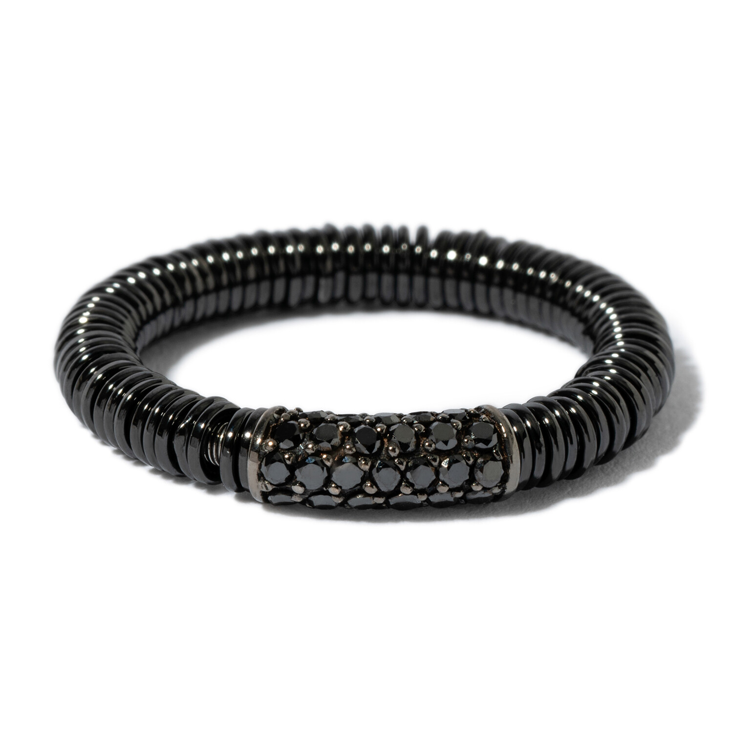 18k Black Gold Diamond + Black Ceramic Single Stretch Ring // Ring Size: 6 // New