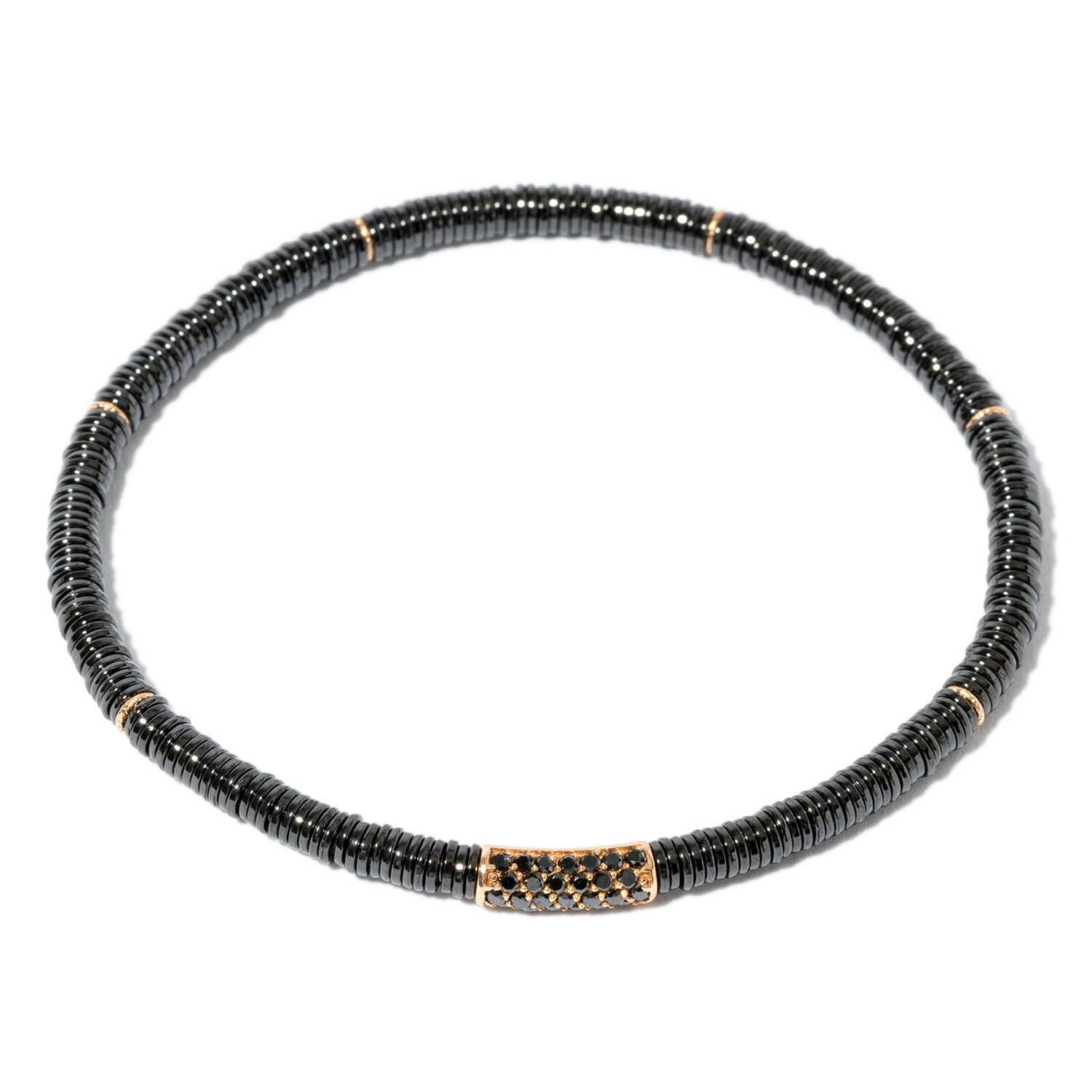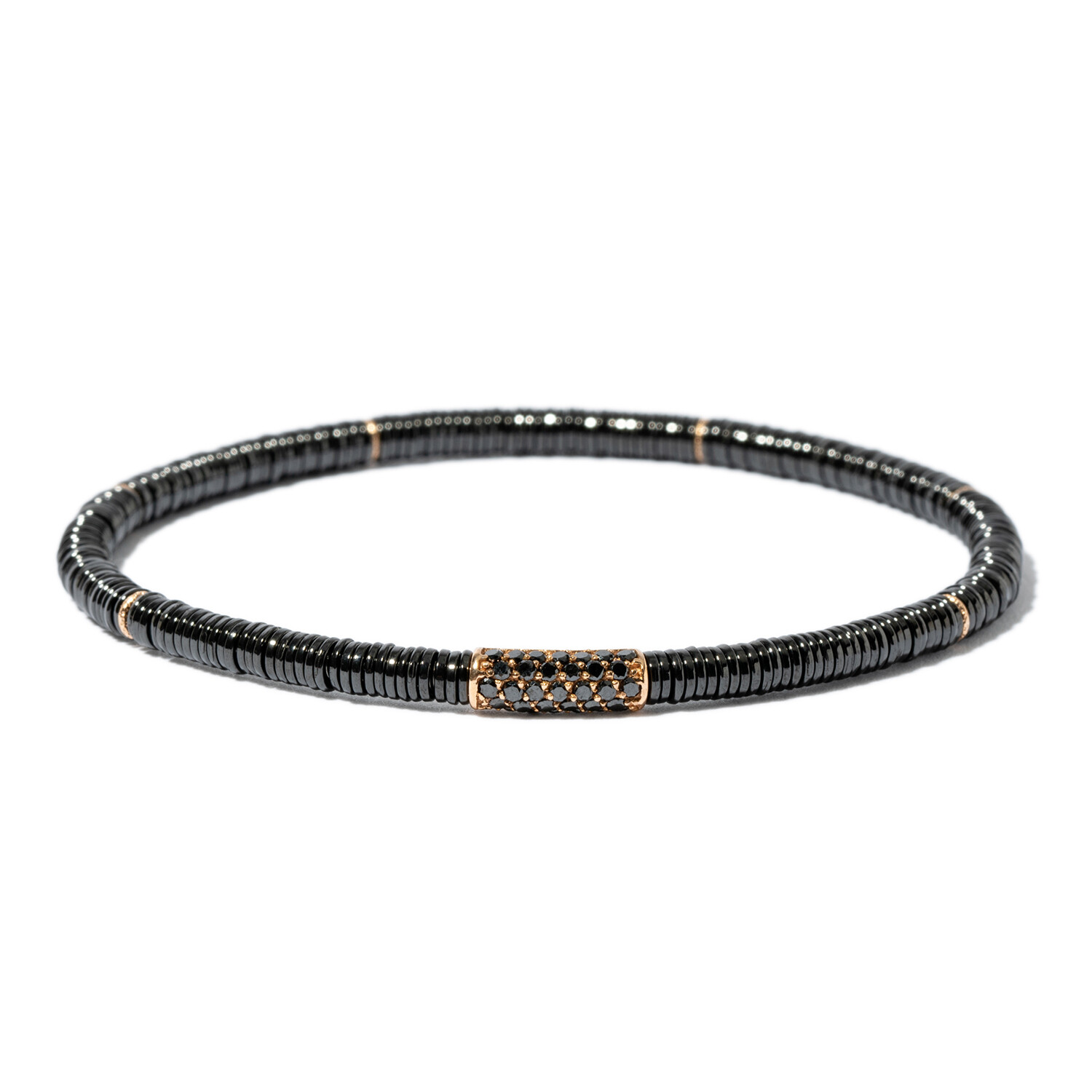 18k Rose Gold Diamond + Black Ceramic Bead Bracelet // 7" // New