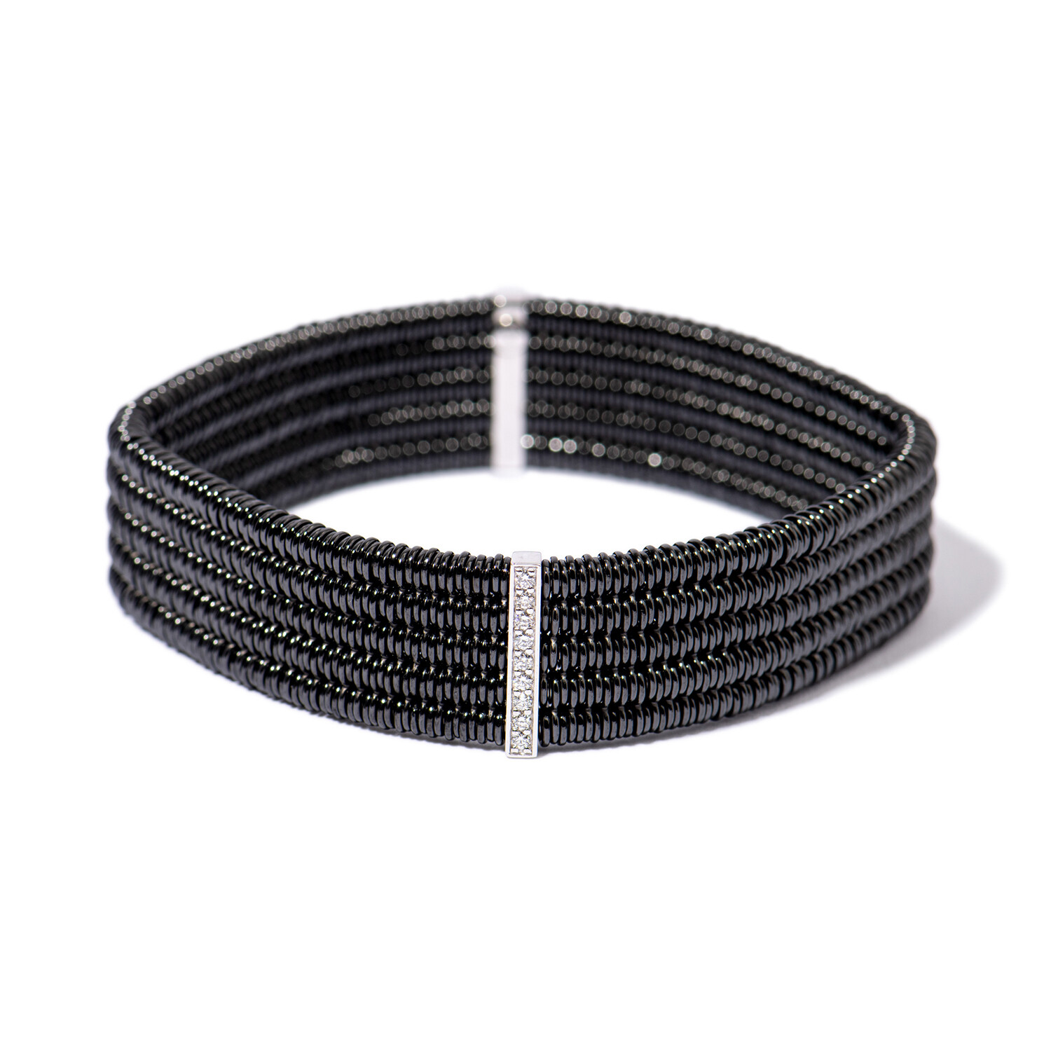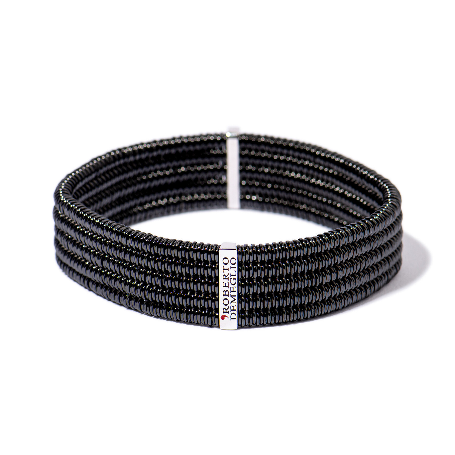 Completely modern with an art deco undertone, this collection by Roberto Demeglio is a new kind of luxury jewelry. Each piece is elevated yet playful, with stretch elements that make it comfortable and so easy to wear. A dramatic juxtaposition of white and black ceramic and silver and gold elements, you can be sure that whether for yourself or as a gift, this is true statement jewelry.