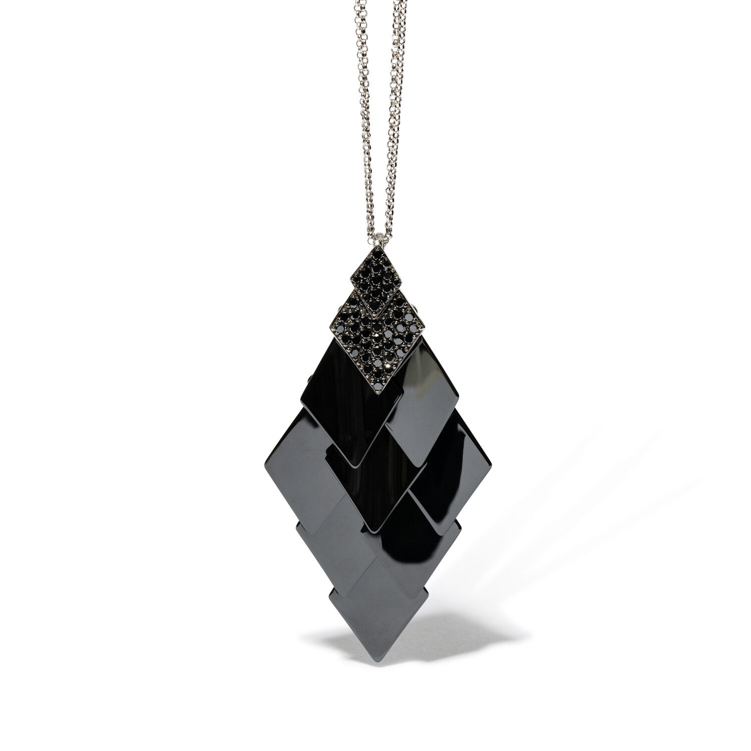 18k White Gold Diamond + Black Ceramic Chandelier Pendant Necklace // 16" // New