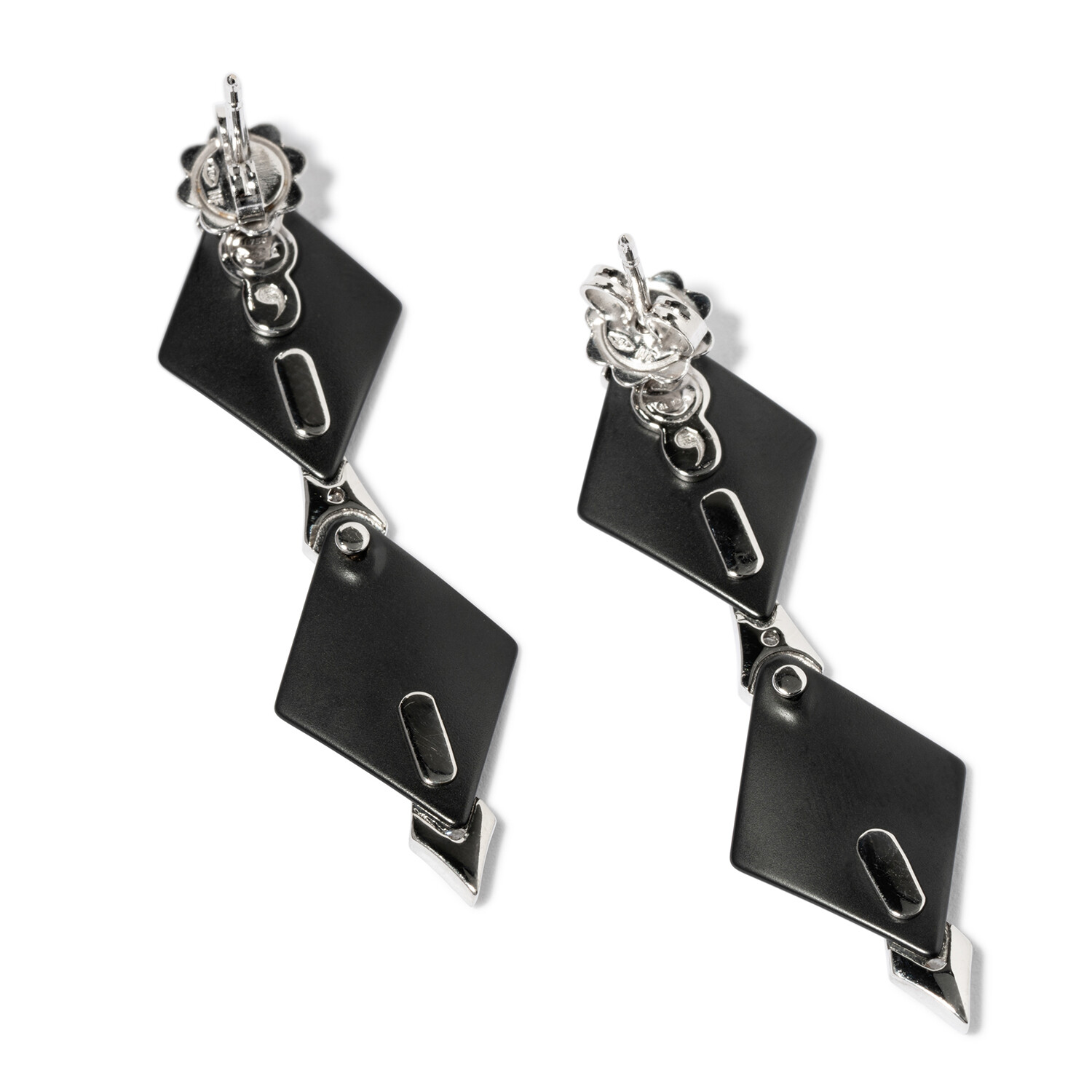 18k White Gold Diamond + Black Ceramic Layered Dangle Earrings // New