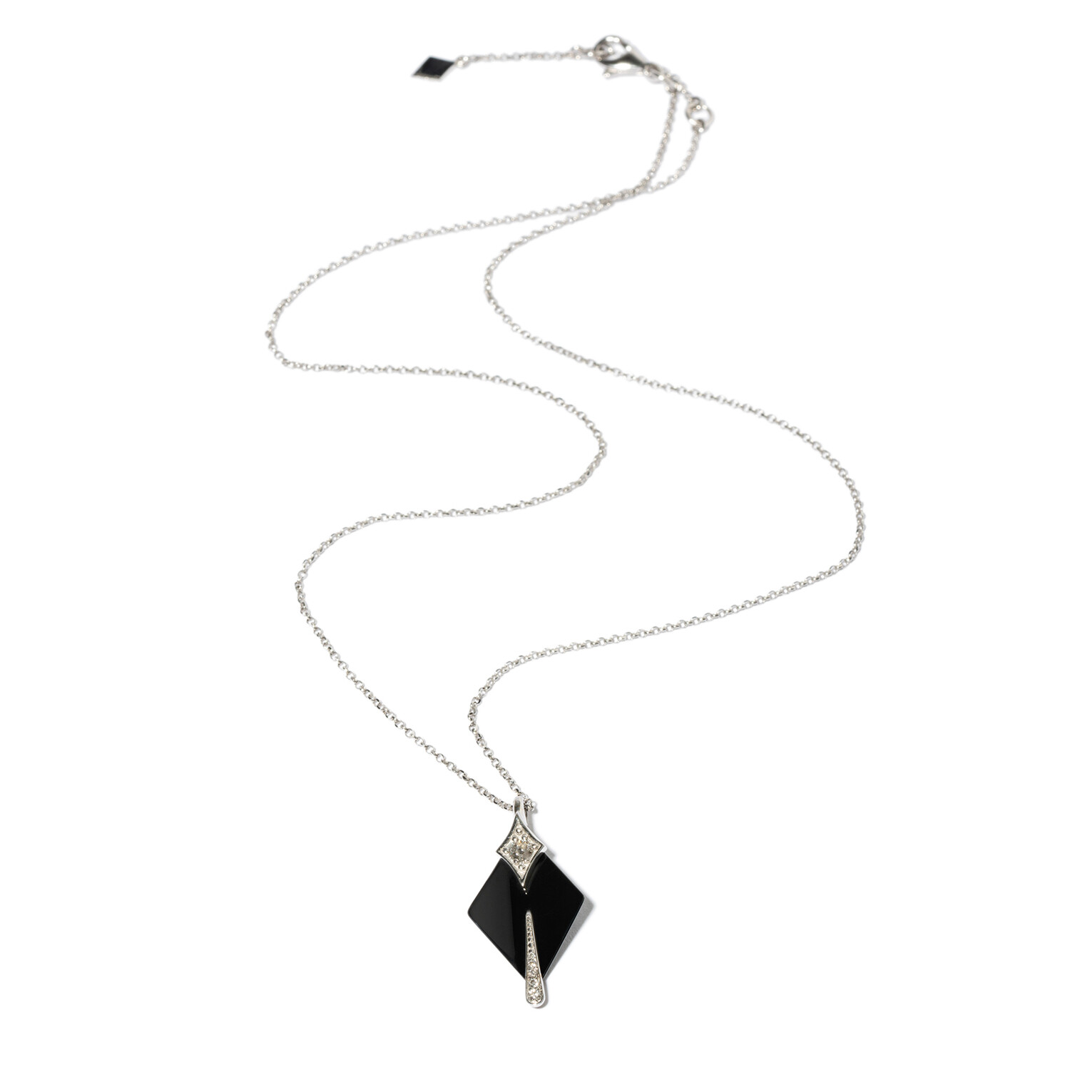 18k White Gold Diamond + Black Ceramic Layered Pendant Necklace I // 16" // New
